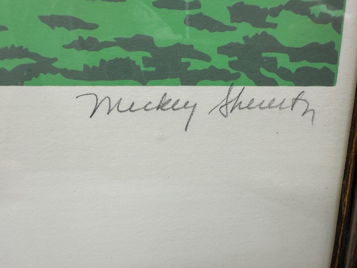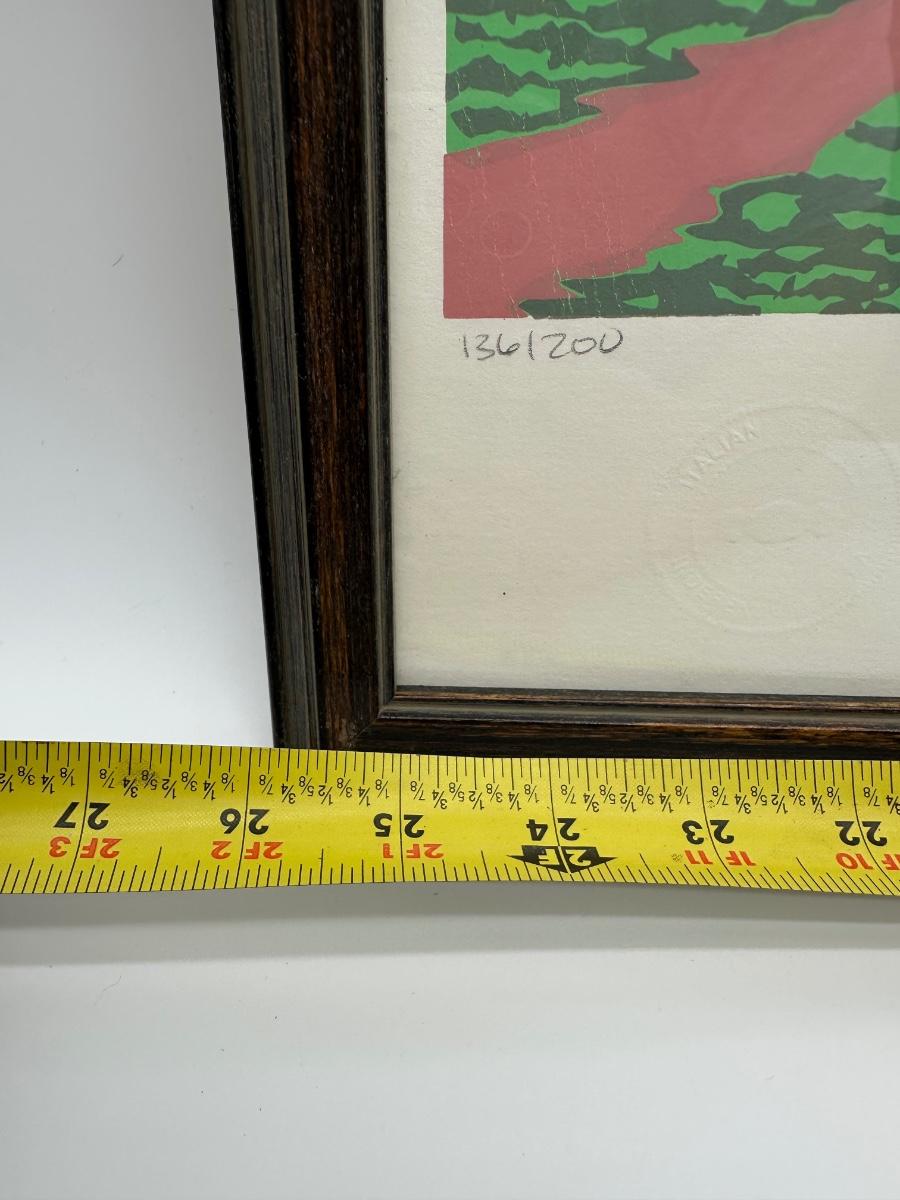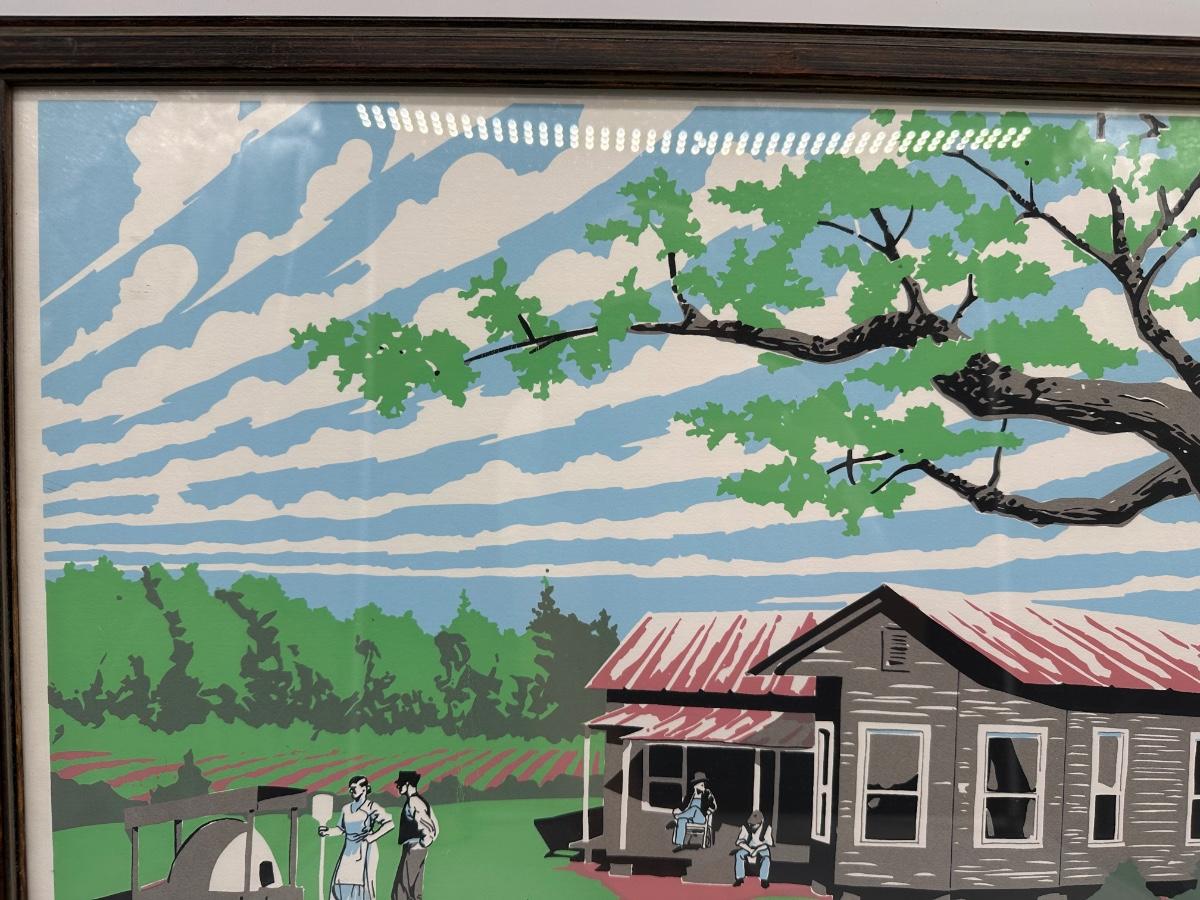 Colorful framed art print titled Italian Festival, commemorating the April 1987 festival in Independence, Louisiana. Signed by the artist (appears to read Mickey Sheuch), and hand-numbered 136/200, indicating a limited edition. Features a charming rural Louisiana scene with farmhouse, oak tree, and figures at play. Nicely presented in a wood frame. Great piece of local Louisiana folk/art history and festival memorabilia.