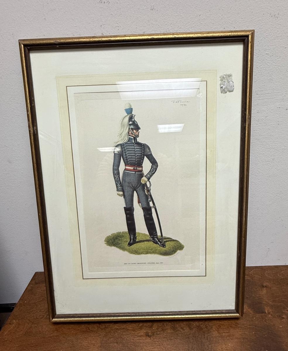 Framed Lithograph – 2nd U.S. Light Dragoons – Colonel – Circa 1812 - Hand Signed 49/920
