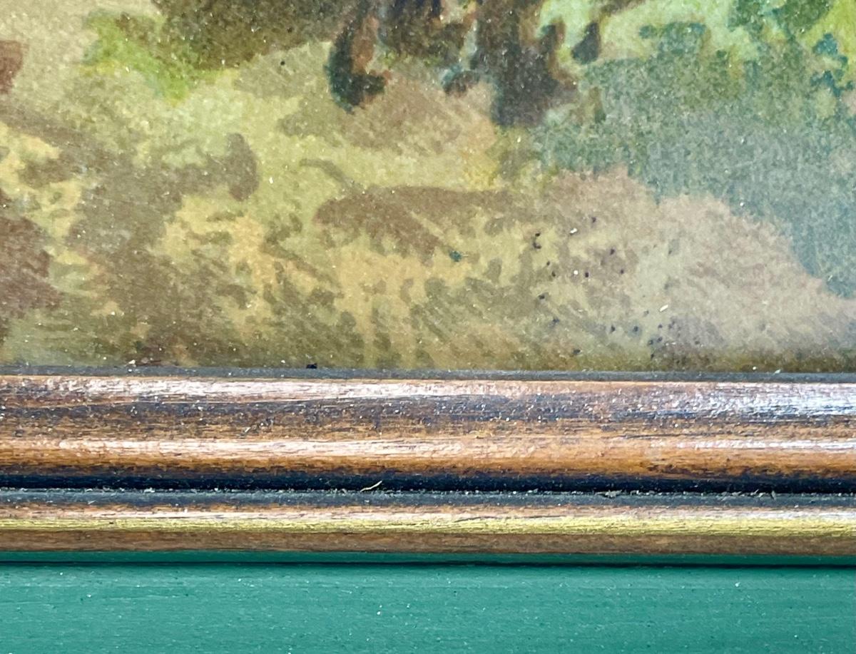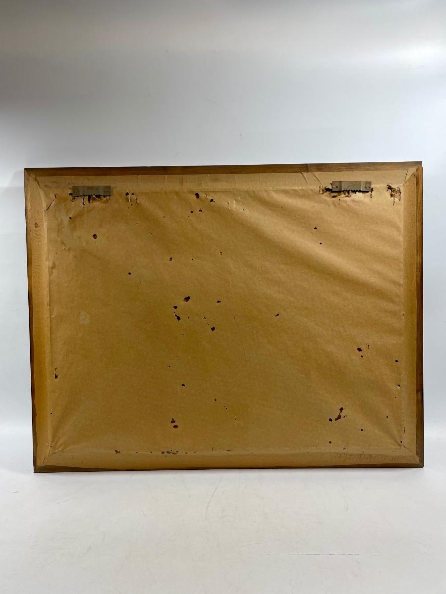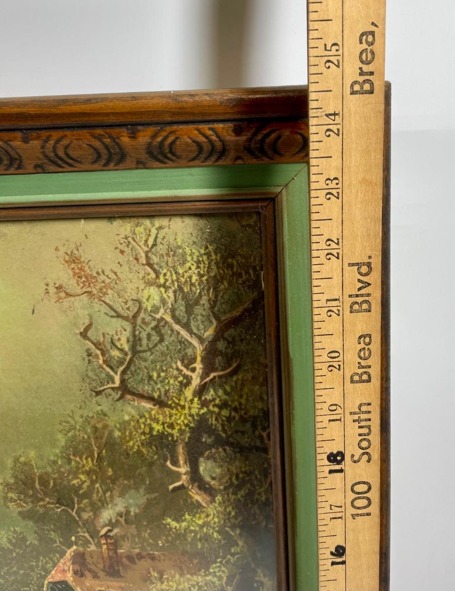 Mounted behind glass. Unable to read artist name. Looks to be a lithograph of an original oil painting. Landscape with Windmill, House, River and Pathway. Approx. framed size is 24" x 32".