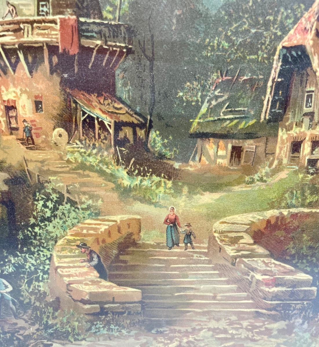 Framed Lithograph: Landscape with Windmill, House, River and Pathway