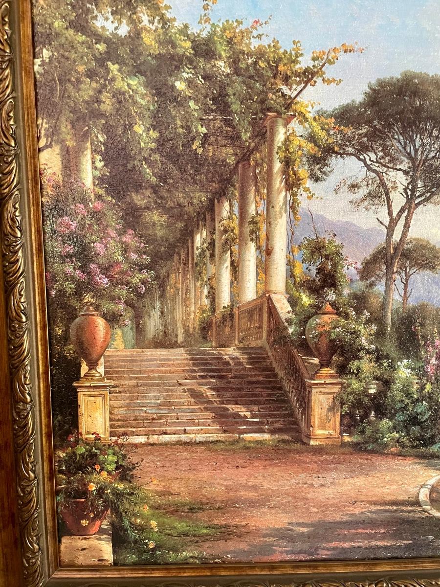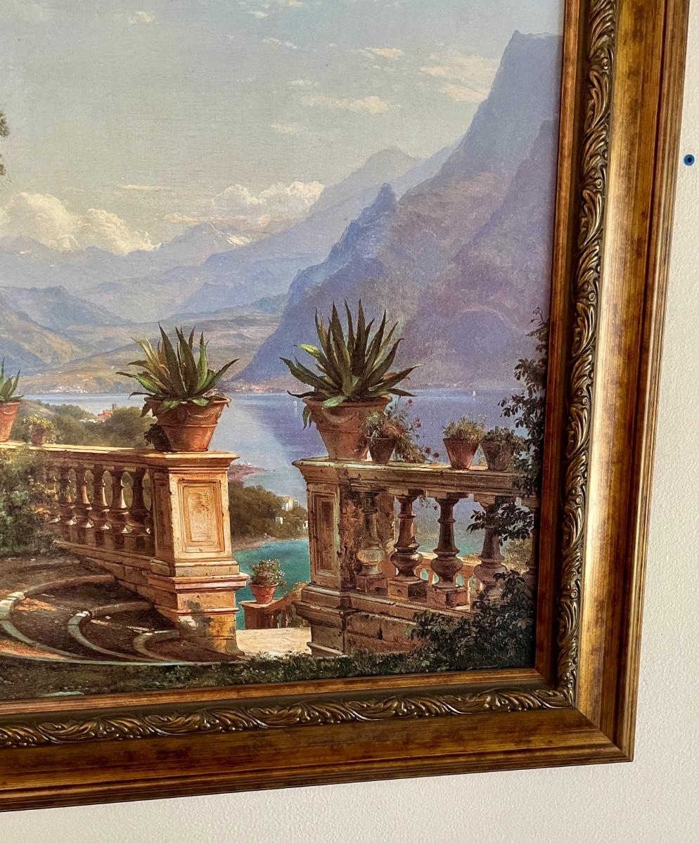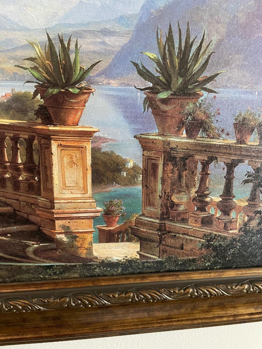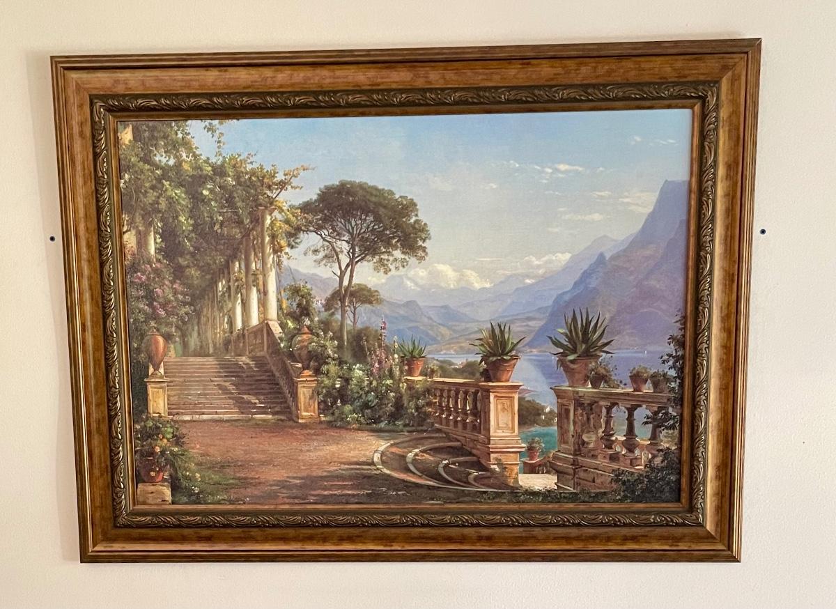Framed Wall Art Landscape Lithograph of a Mediterranean Villa 36 x 48 inches