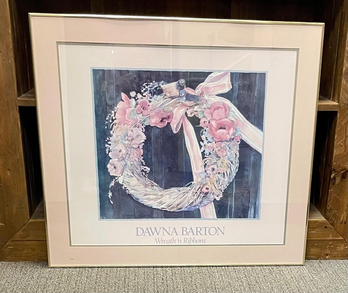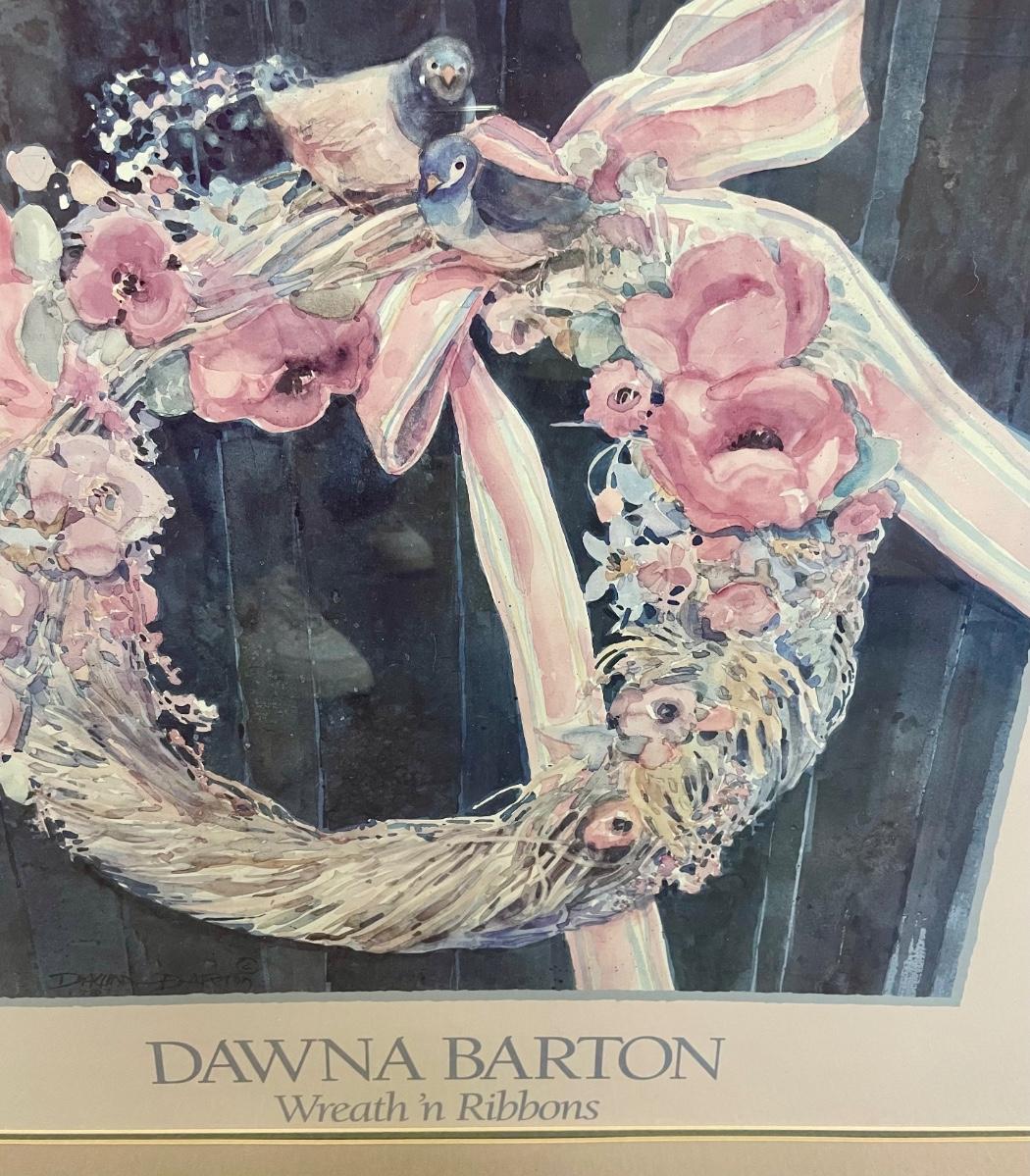By Donna Barton: "Wreath & Ribbons", framed size approx. 34" x 30".