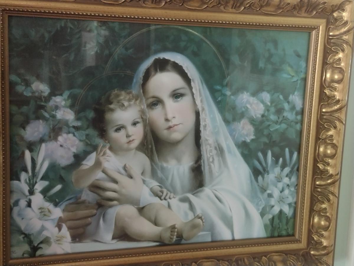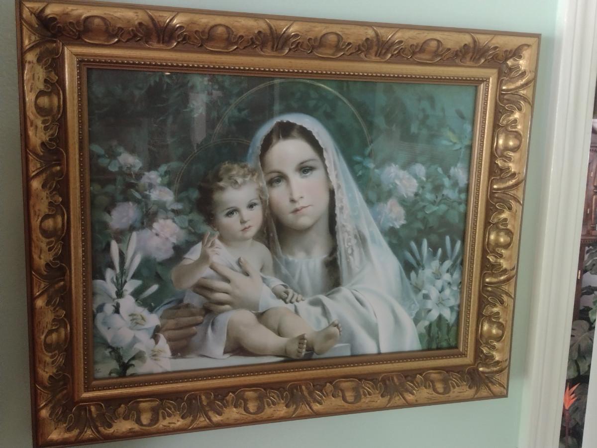 Framed Madonna of the Lilies with Jesus Print- Approx 15 1/2" x 20"