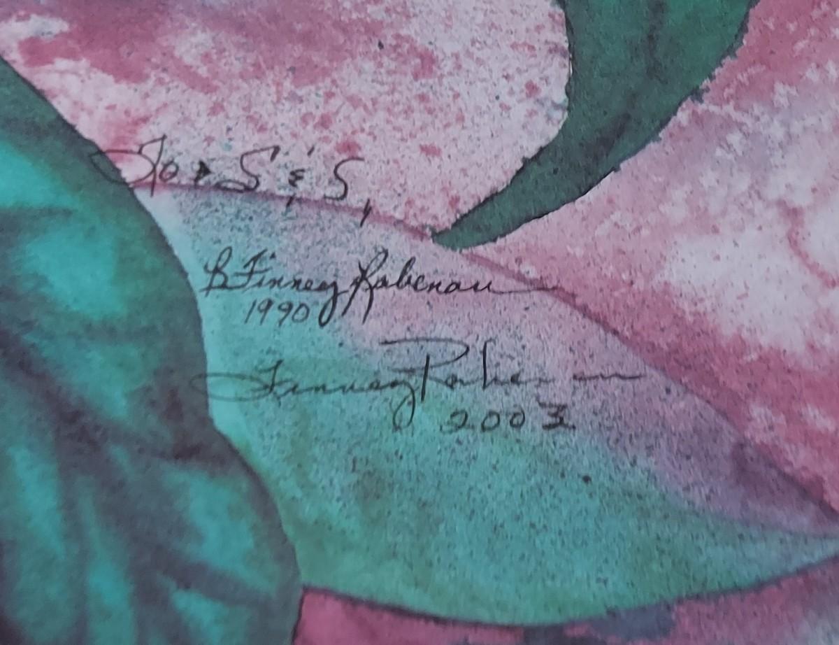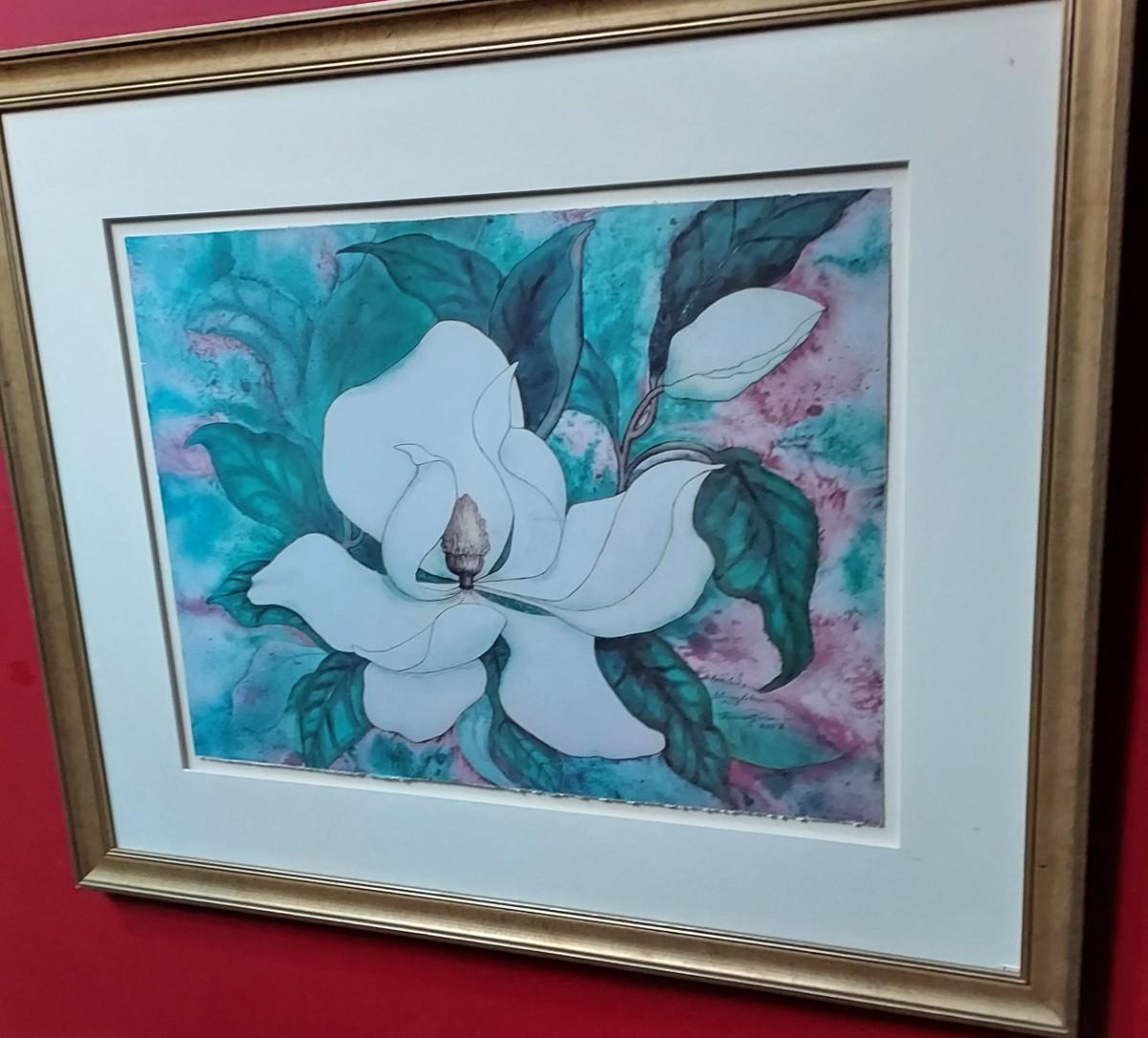 Signed magnolia print framed under glass