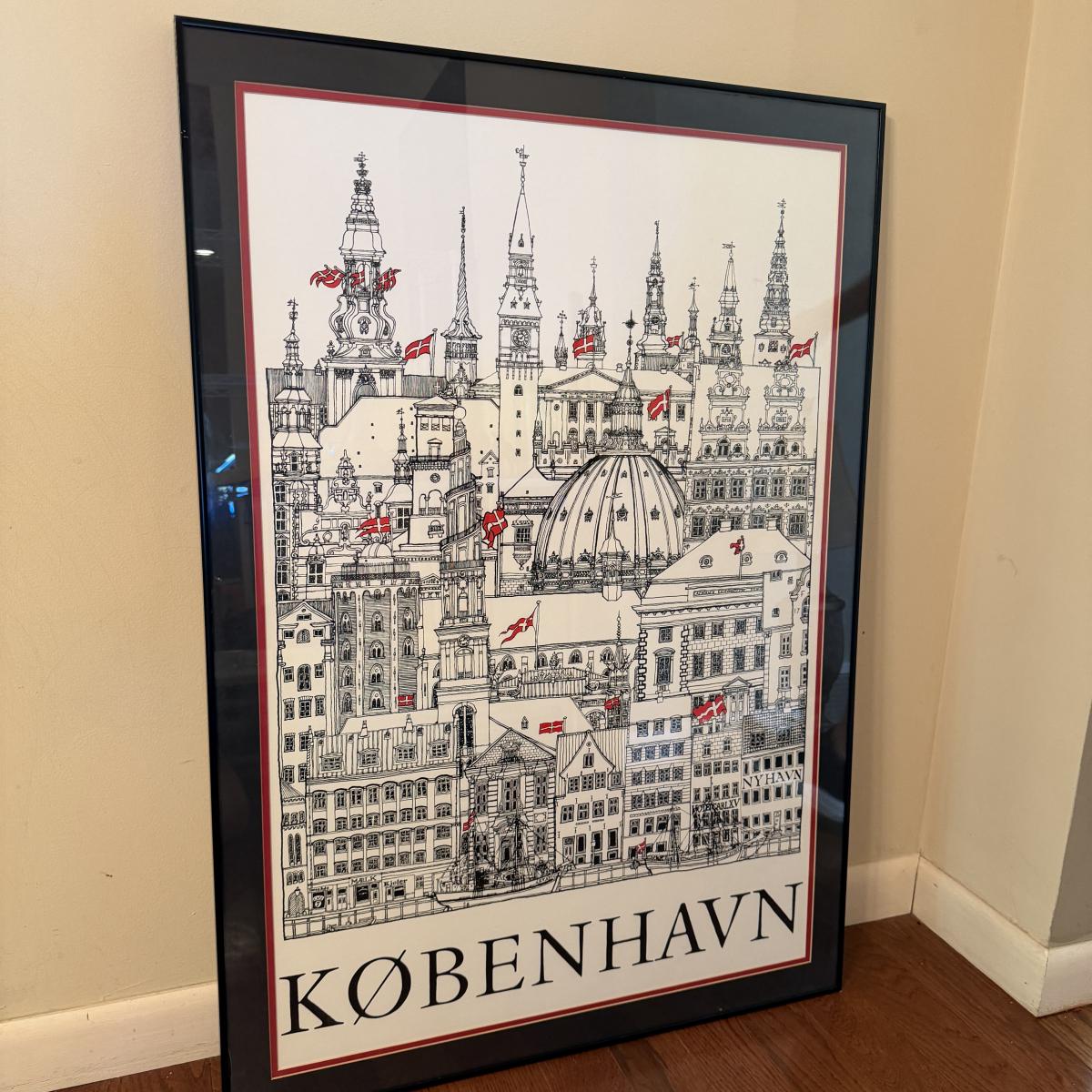 This metal framed artwork of Copenhagen is under glass and measures 28” x 40”H