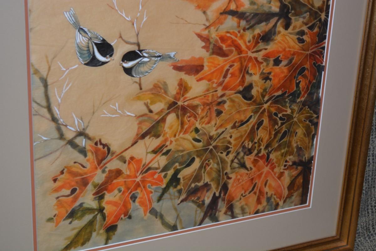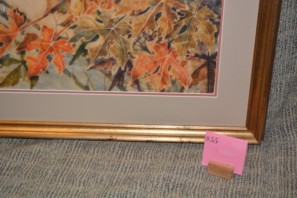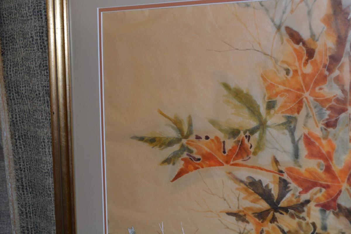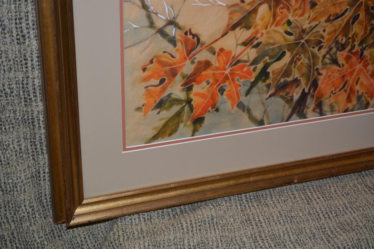 Framed & Matted Autumnal Foliage Large Wall Art in Painted Gold Frame