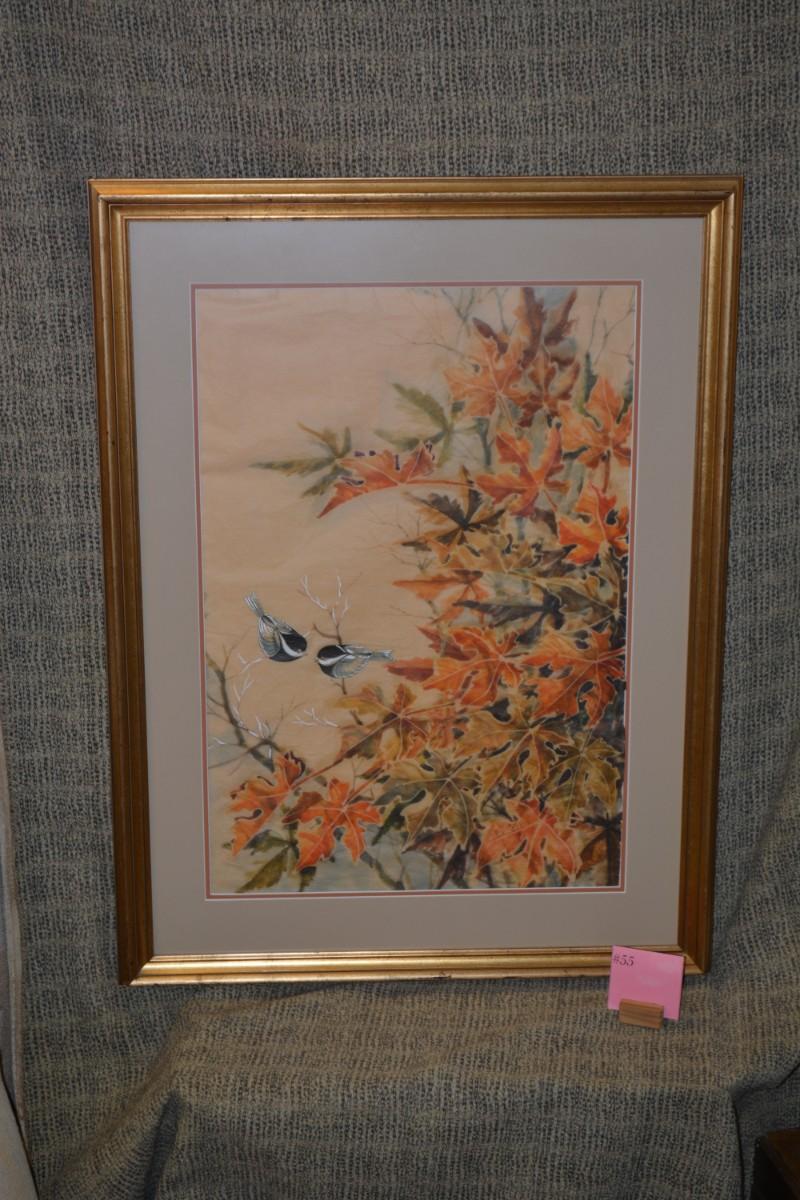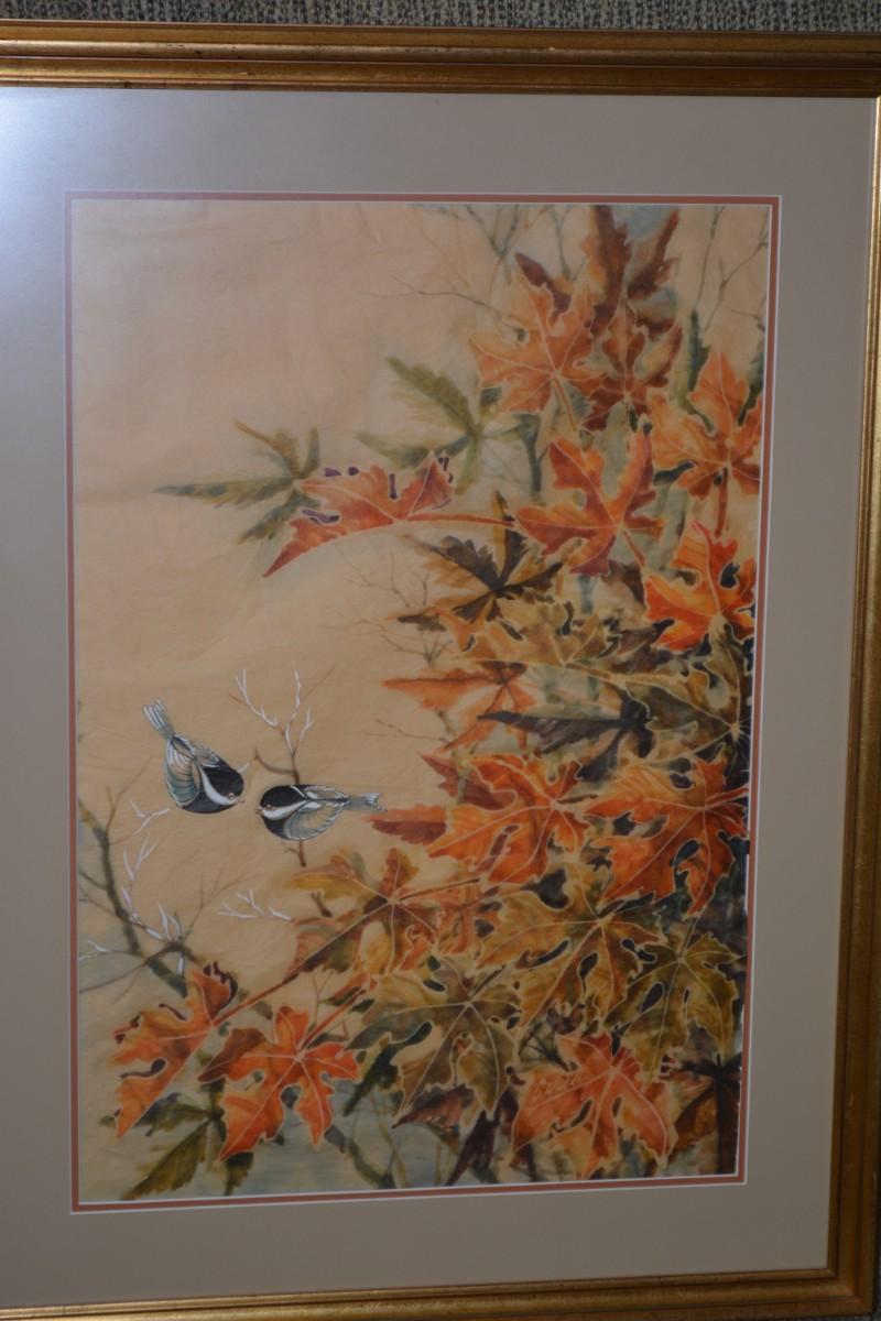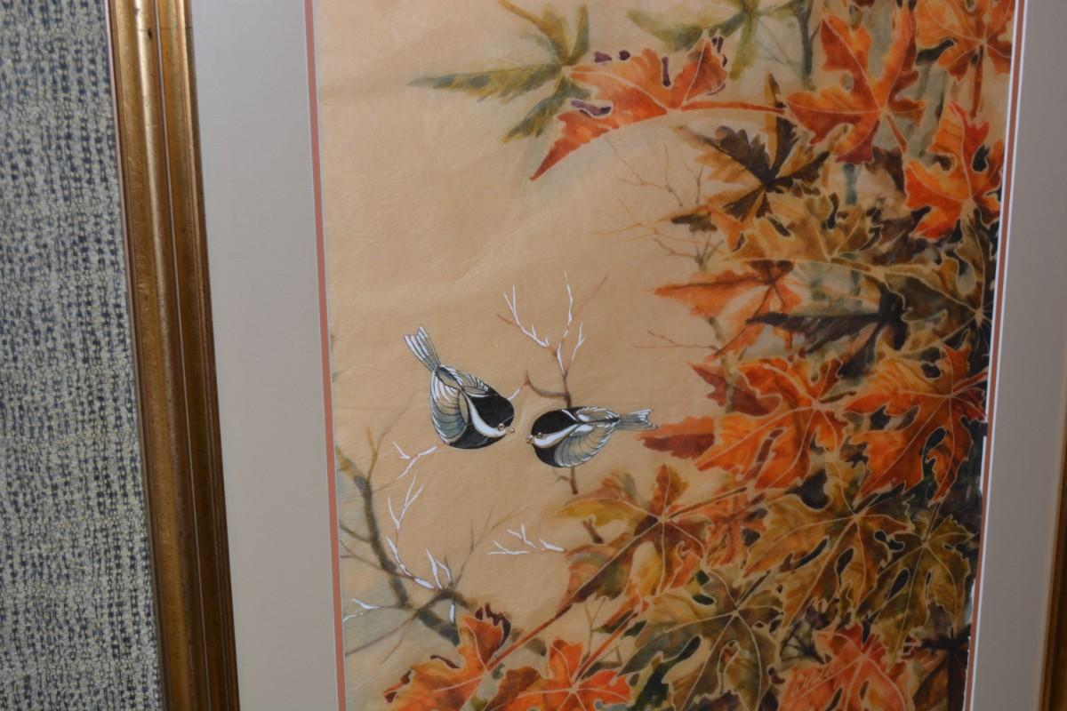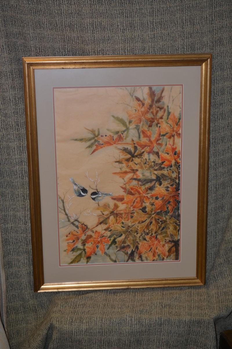 Framed & Matted Autumnal Foliage Large Wall Art in Painted Gold Frame