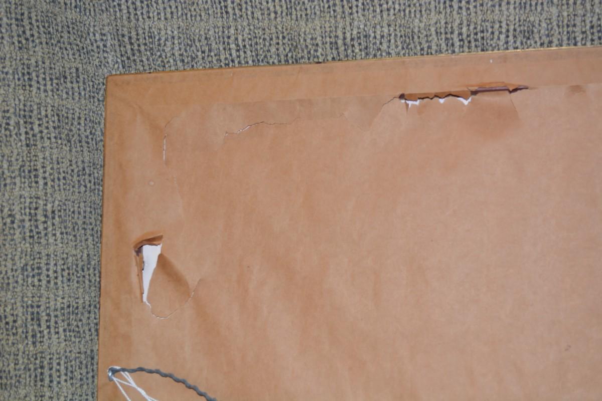 Seems to be on really thin paper or tissue paper. Measures 37.5"x28.25".