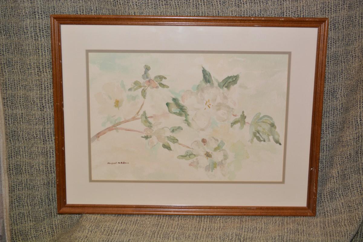 Framed & Matted Original Floral Watercolor by Margaret E.