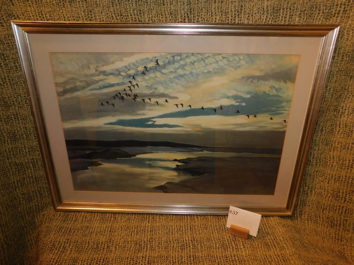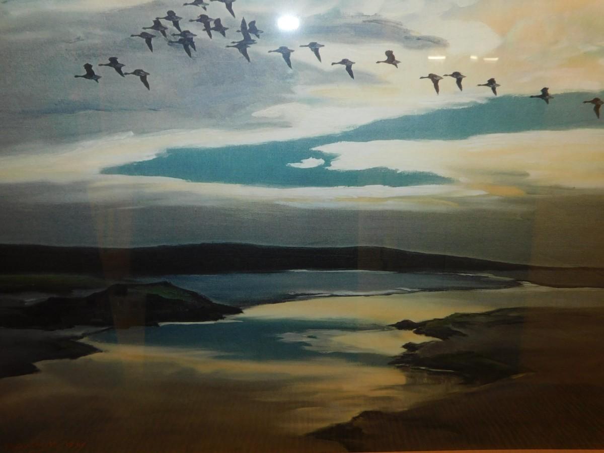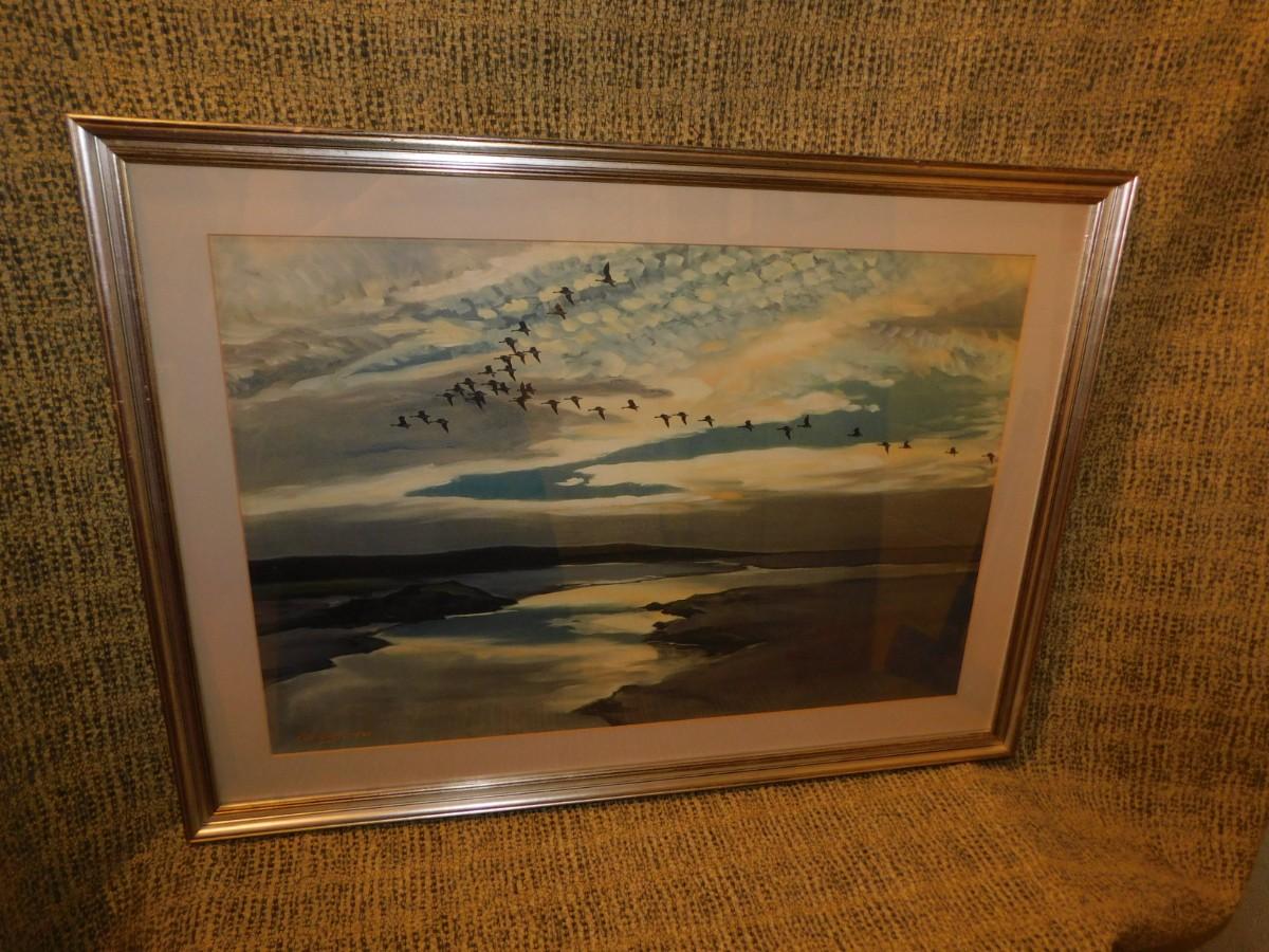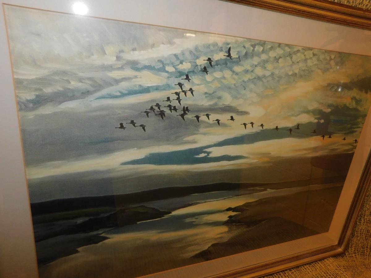 Framed & Matted Peter Scott Print Brent Geese Flighting 29”x21”