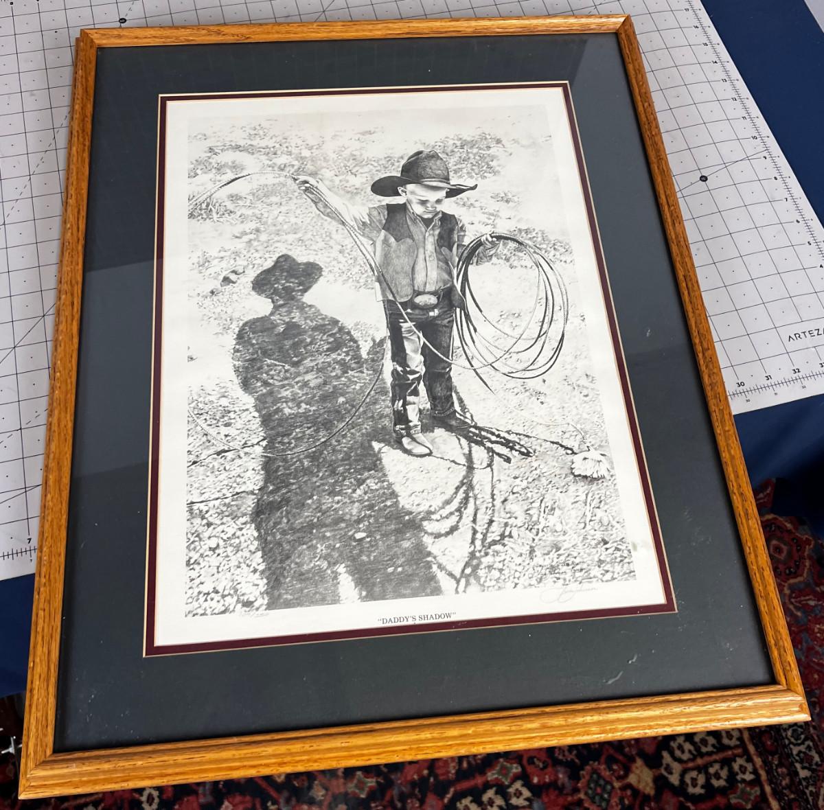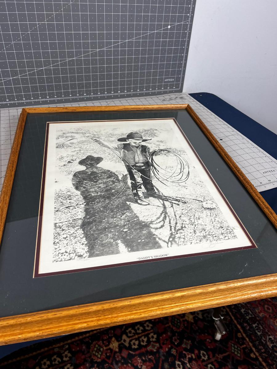 Framed Matted Print Titled "Daddy's SHADOW" 109 of 350 Cowboy