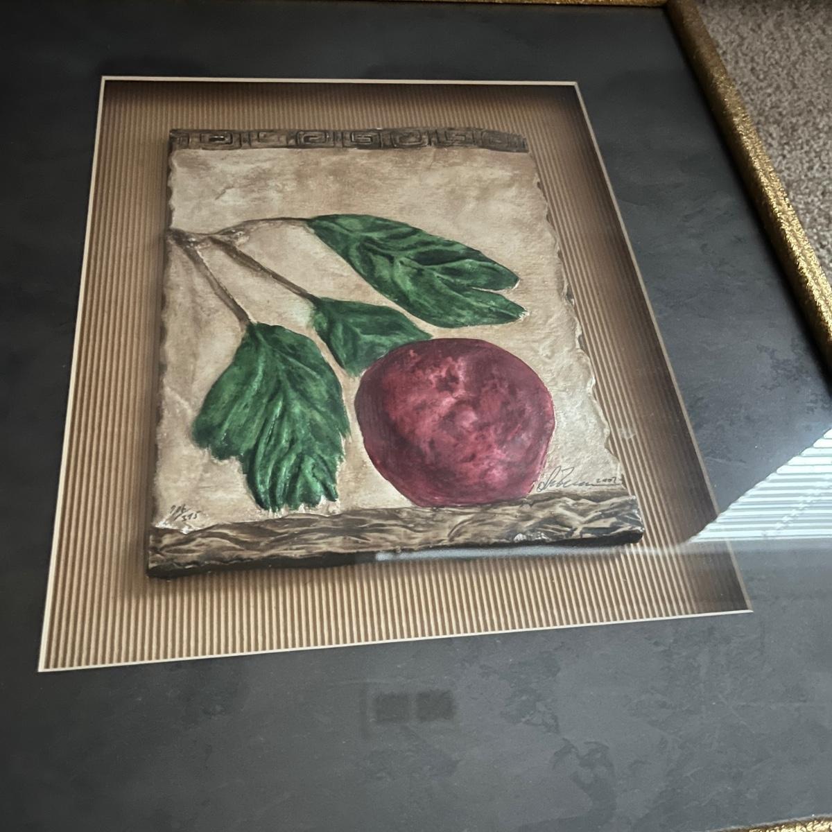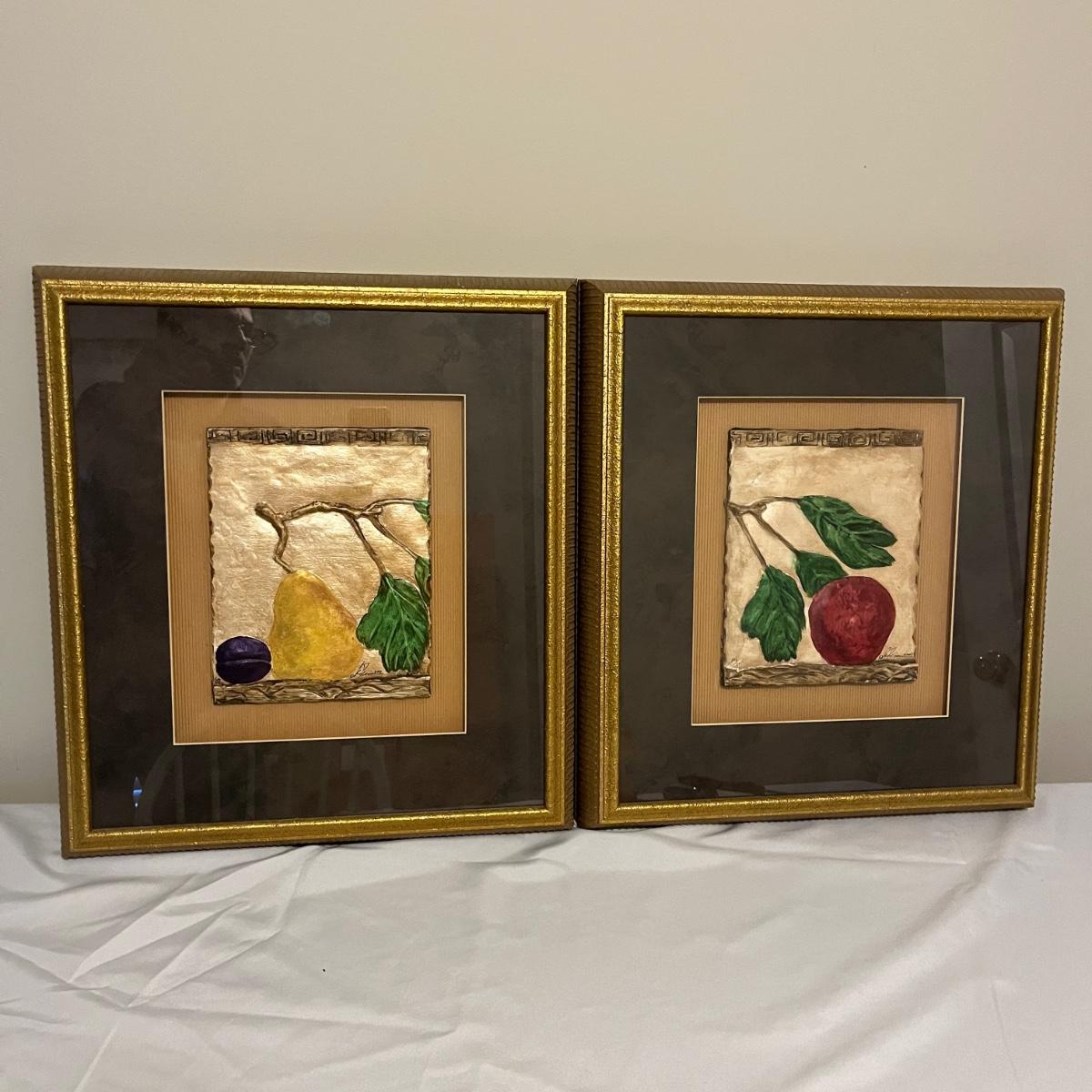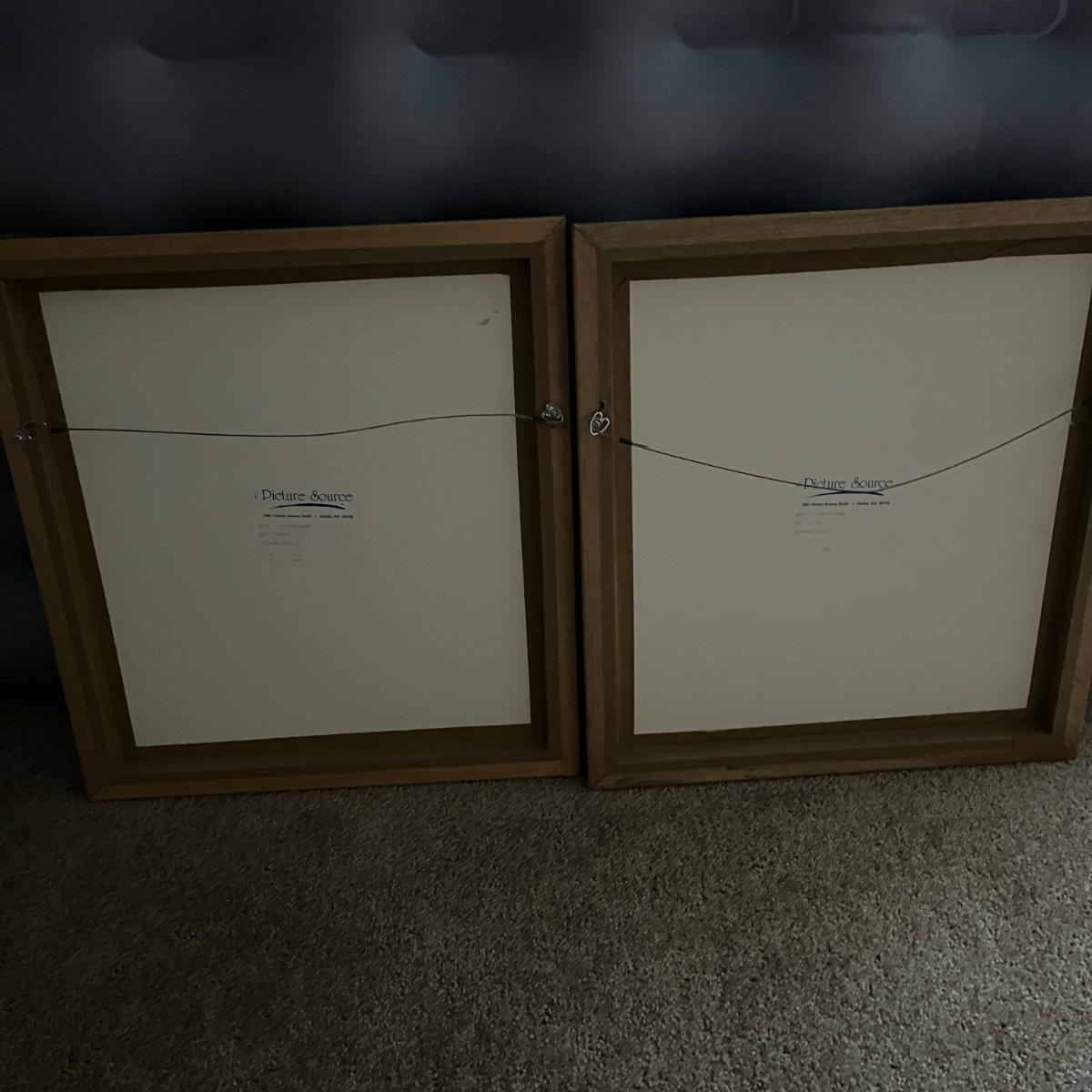 Lot includes two pieces of wooden framed, matted and signed art. Artists name is illegible, see pictures. Frames measure 18” x 2” x 20”H.