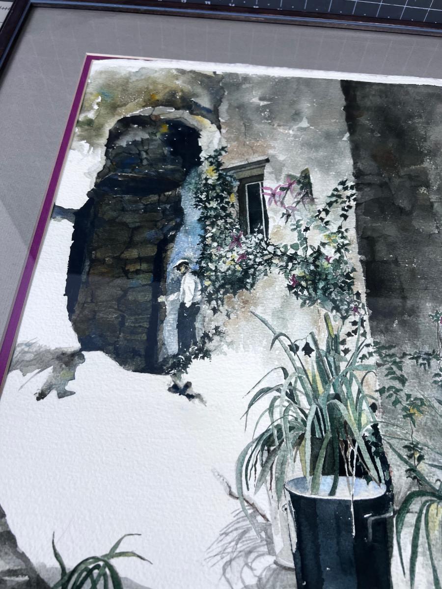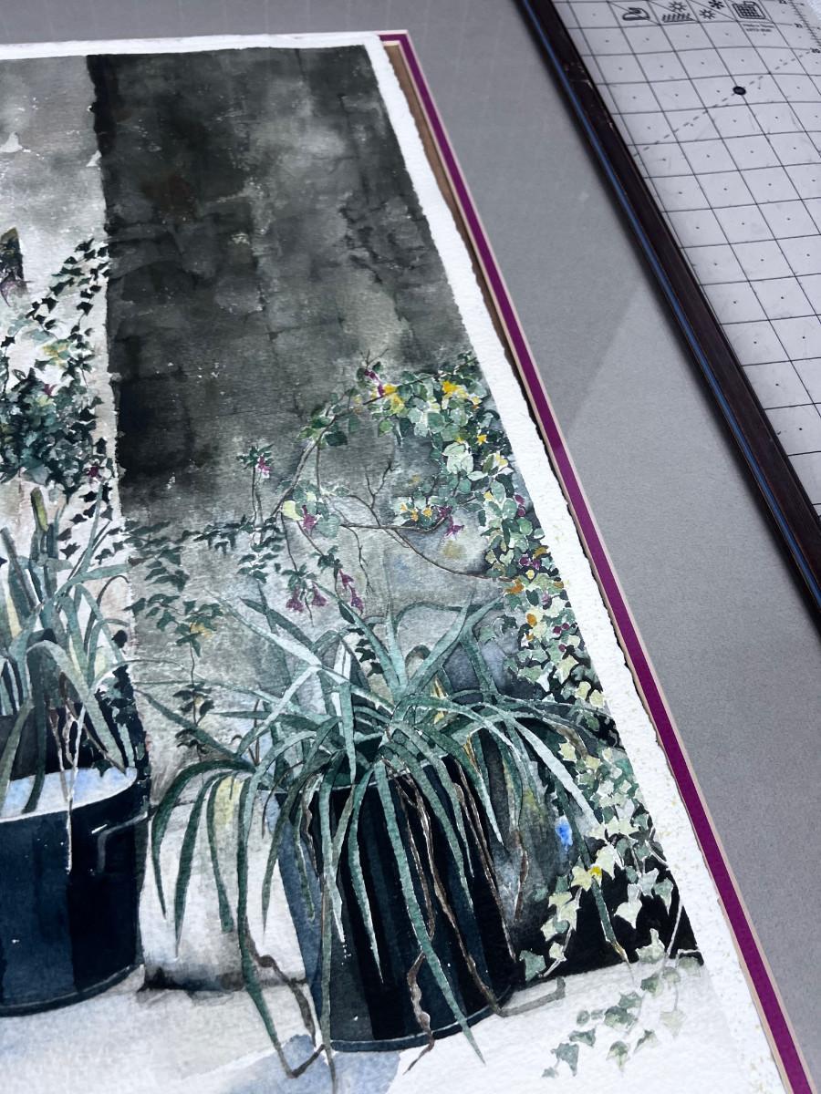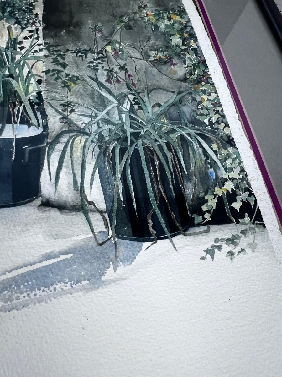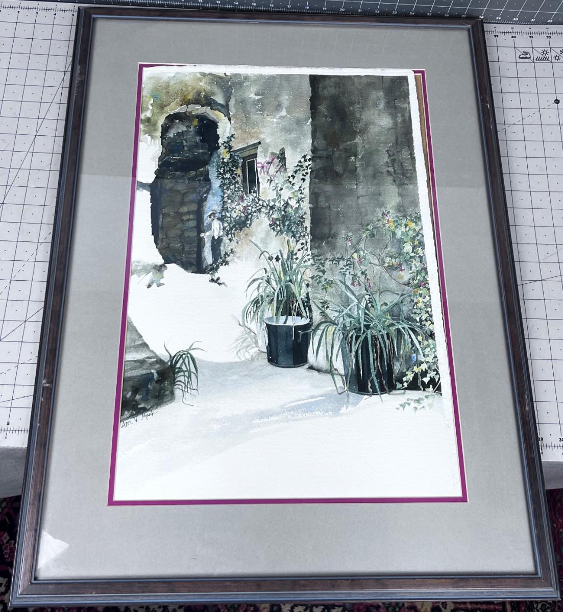 Framed Matted Water Color of Plants in the Doorway Artist: Ann V. Maak