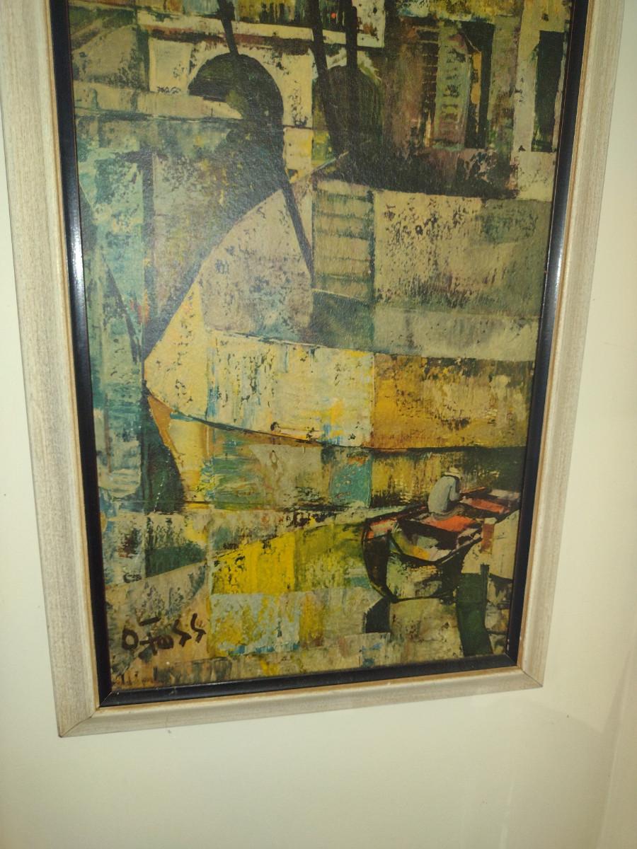 Framed Mid-Century Modernist Print by Oliver Foss- Approx 34 1/2" x 14"