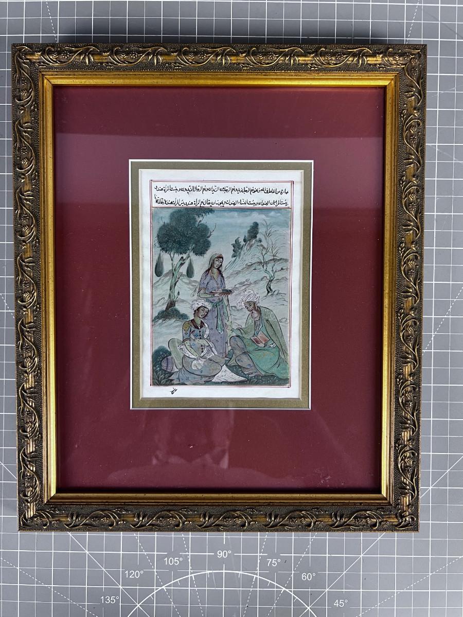 Framed Middle Eastern Pen or Watercolor, Beautiful Detail!