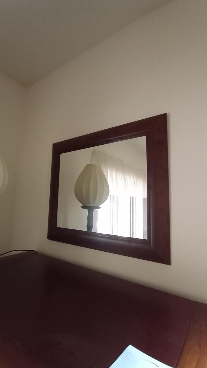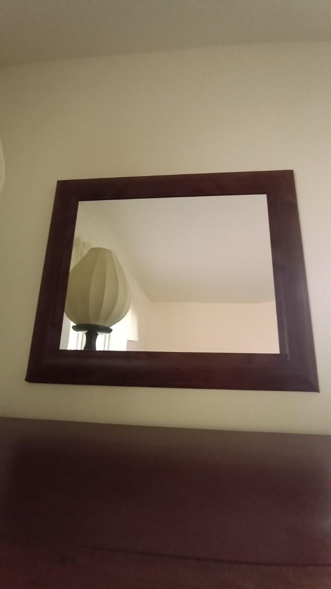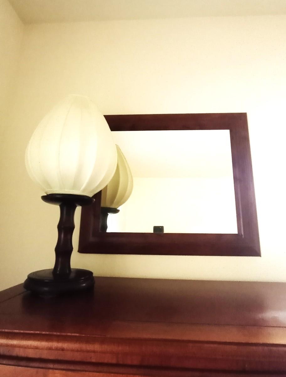FRAMED MIRROR APPROX. 20X25 AND TABLE LAMP WITH SHADE APPROX.22" TALL
