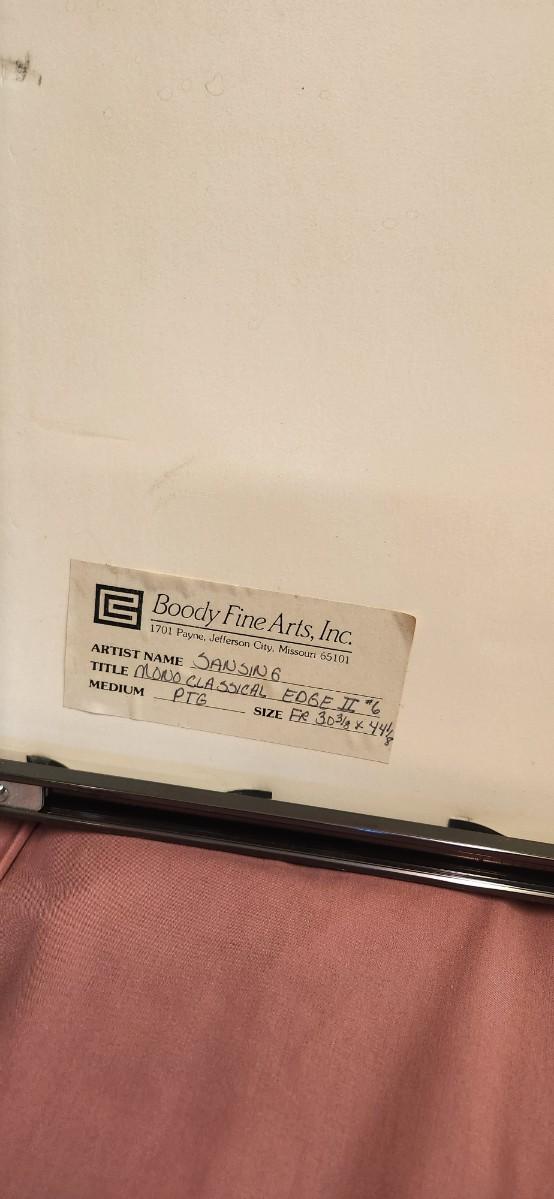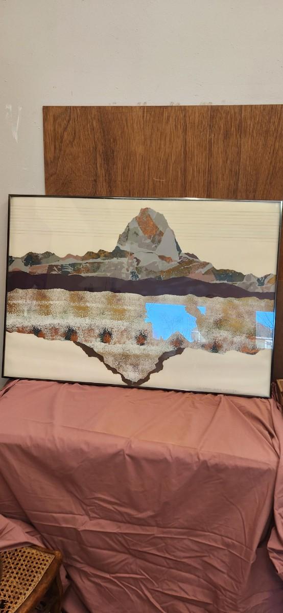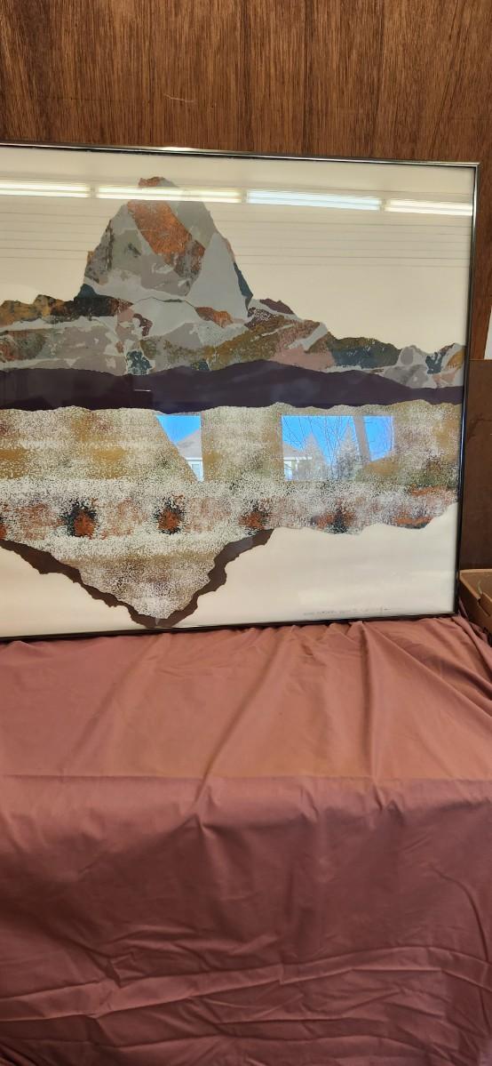 Big framed mixed media artwork.