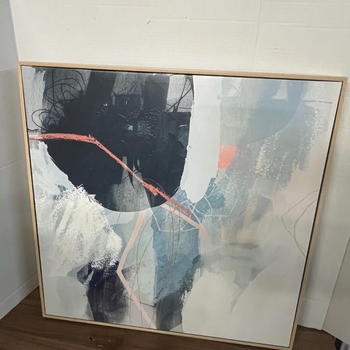 Includes 2 canvas pieces, gold frames, blue peach tones.