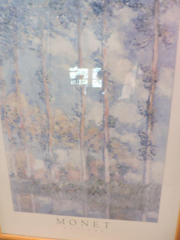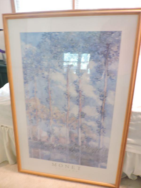 Poster Sized framed Monet Poplars. **Please read Terms and Conditions before placing a bid. Pick up is Sunday, September 15, 2019 from 11am to 4pm and Tuesday, September 17 from 4pm-7pm in Sicklerville. All sales are final. All sales are as is, where is. Please review all photos. Any props included in photos are not included in listing. All measurements are approximate.