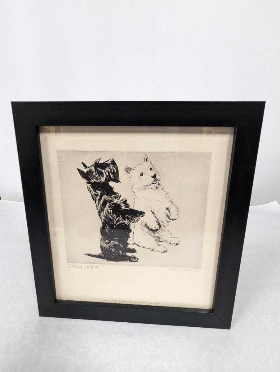 Framed Morgan Dennis Black & White Terrier Whiskey Ad 13" x 14"
