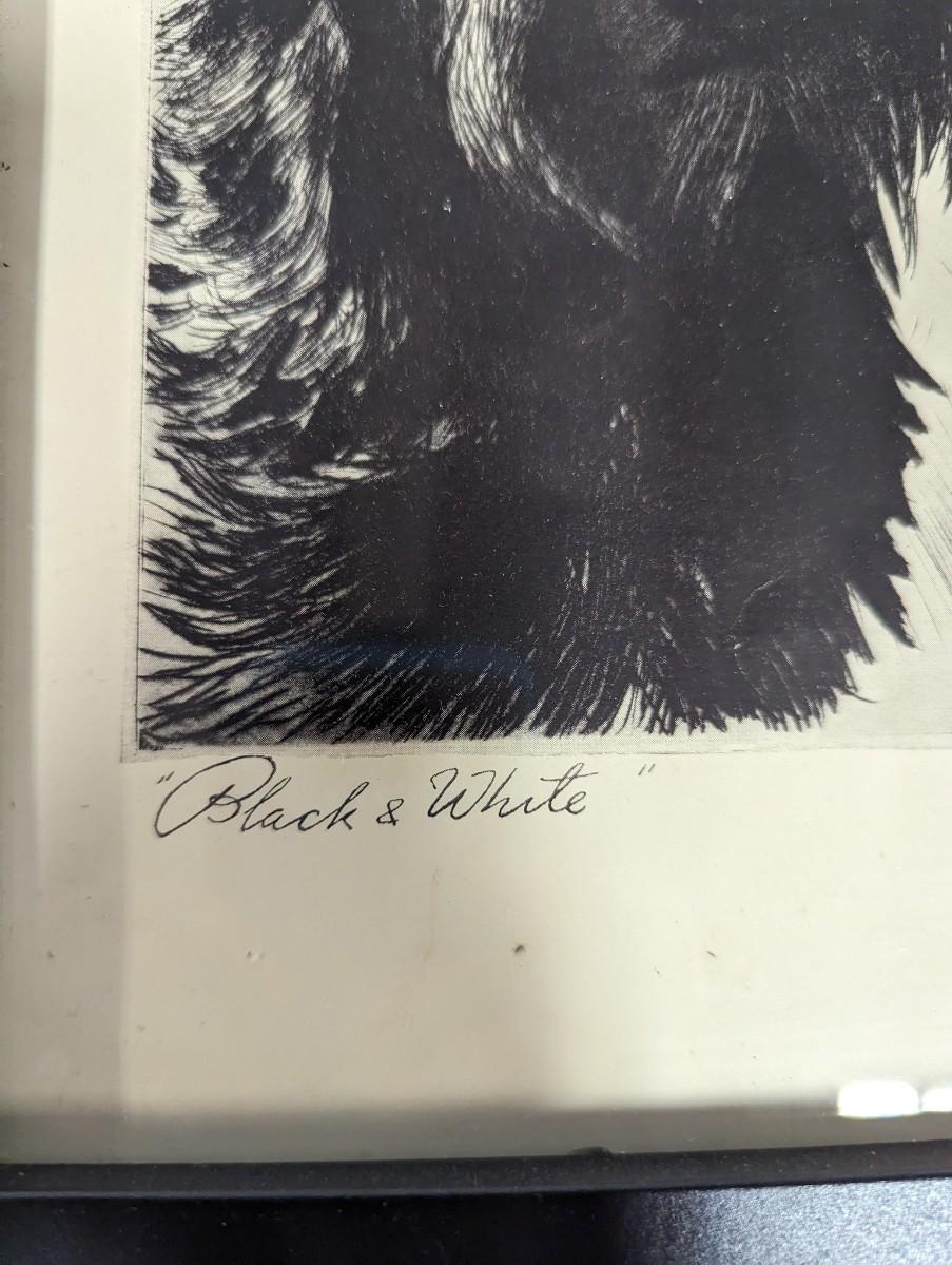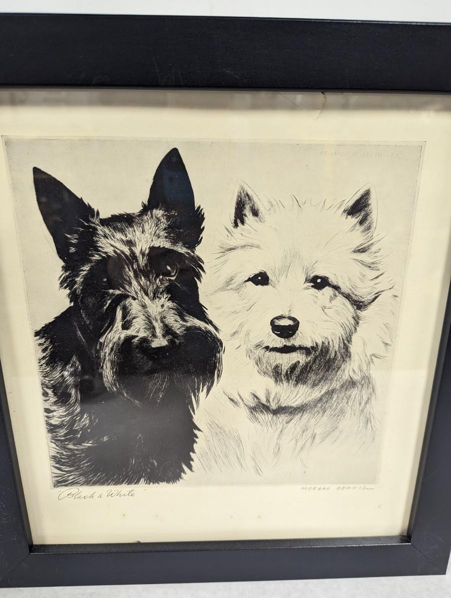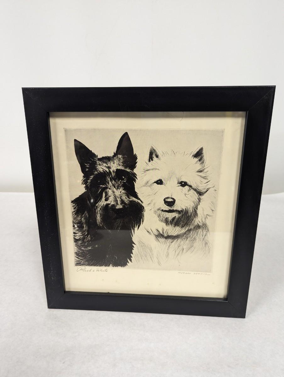 Framed Morgan Dennis Black & White Terrier Whiskey Ad 13" x 14"