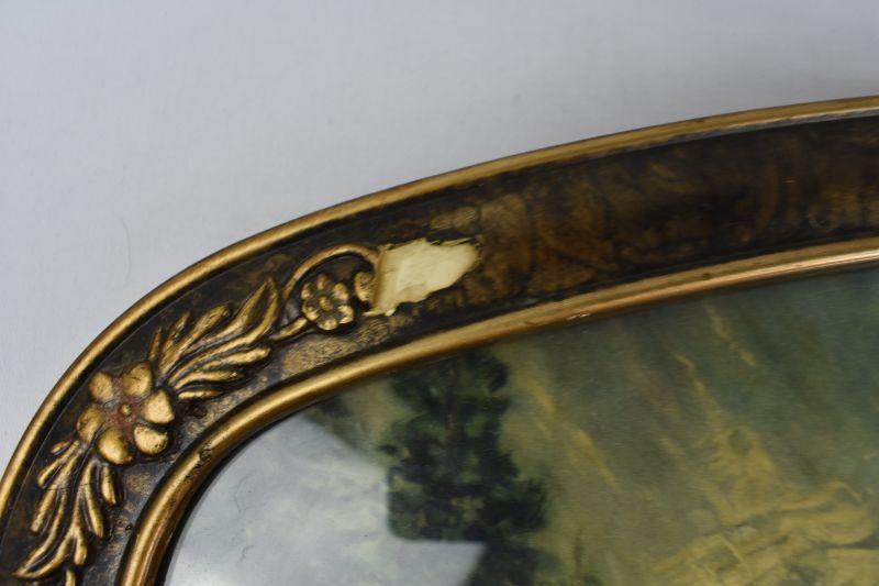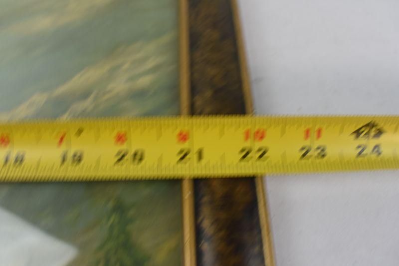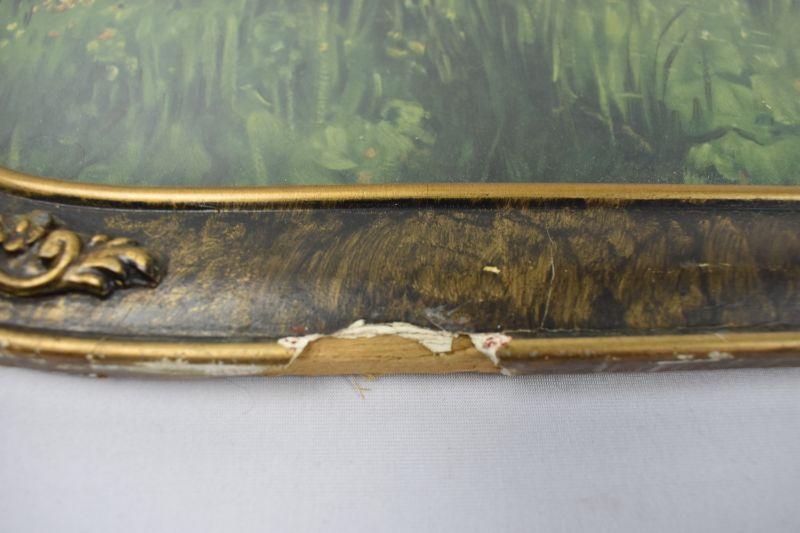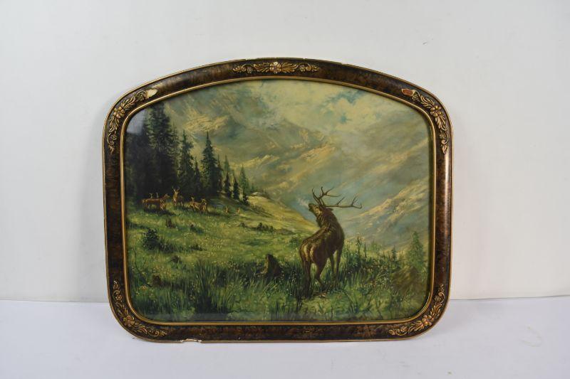 Framed Nature Scene: Mountains/Trees/Animals, Rounded Top Frame - Vintage
