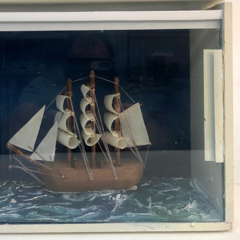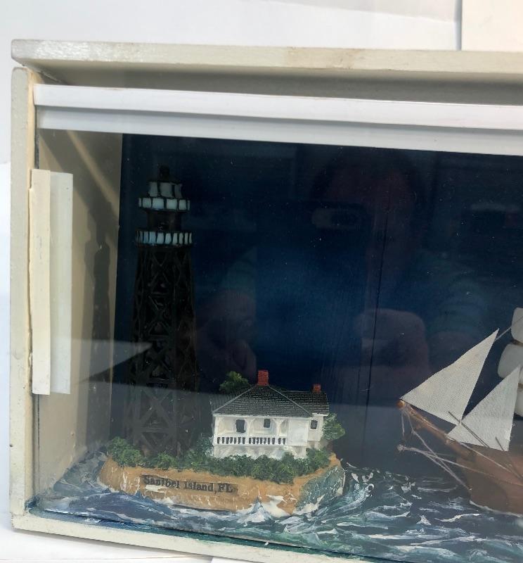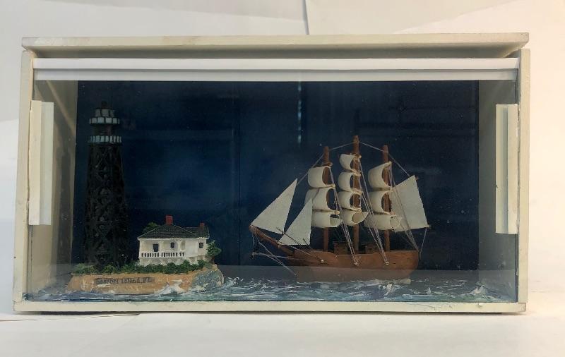 Framed Nautical Diorama Ship and Lighthouse