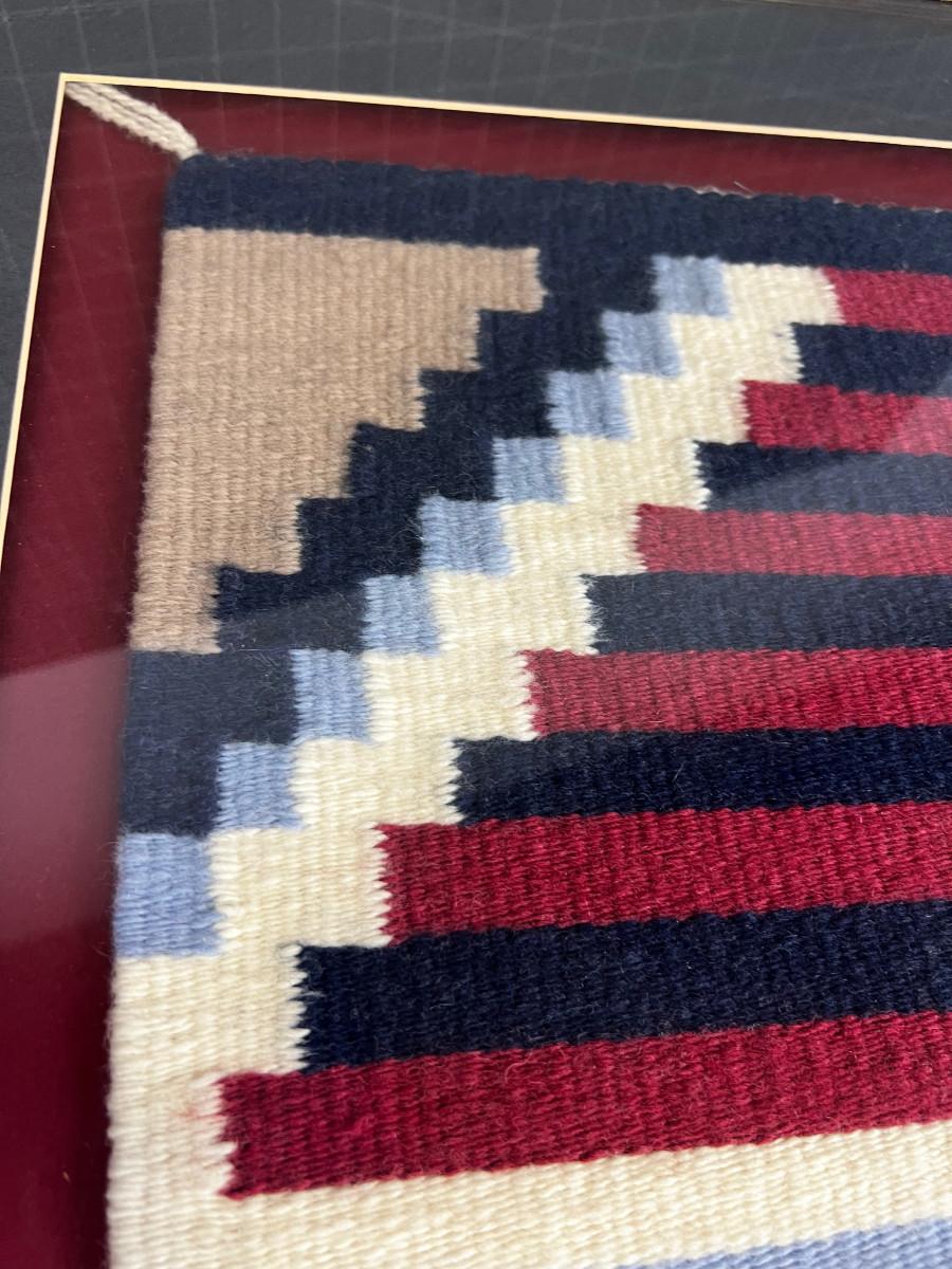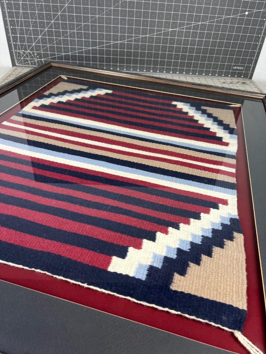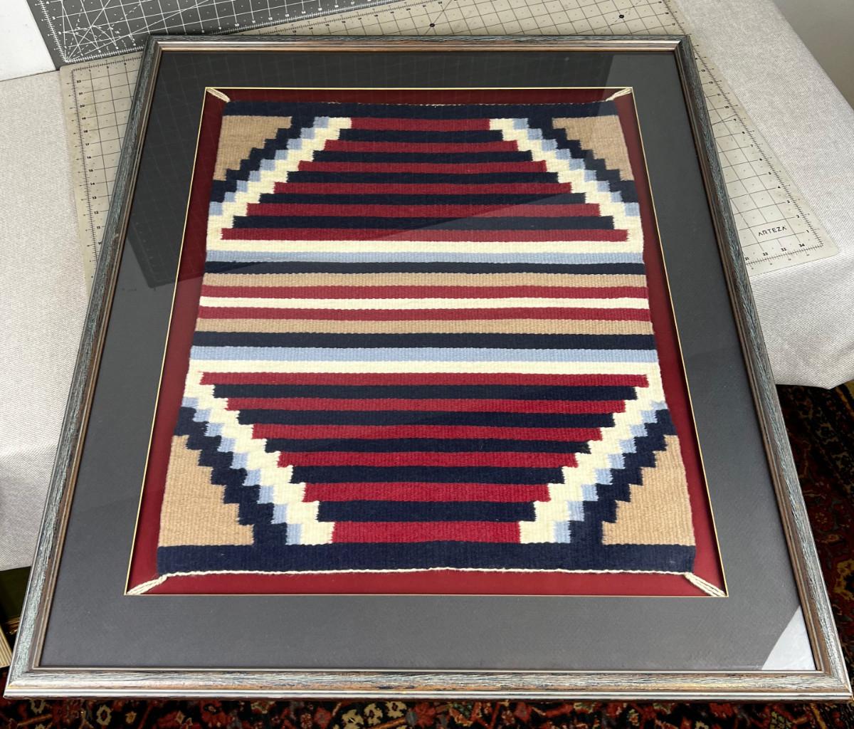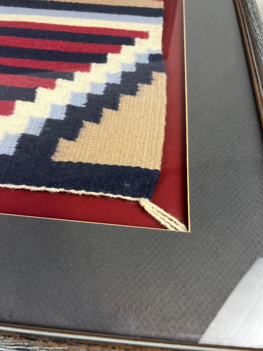 Nice older native American weaving framed the rug is 22x26" and the frame is 32" by 36"