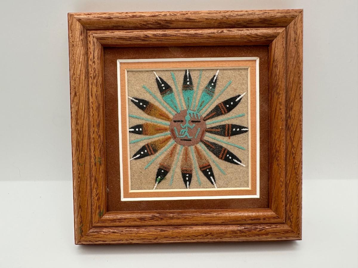Framed Navajo Native American Art, Rainbow Sand Art, Sand Painting, Wall Art