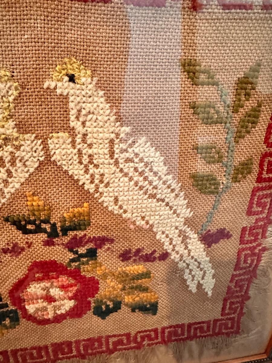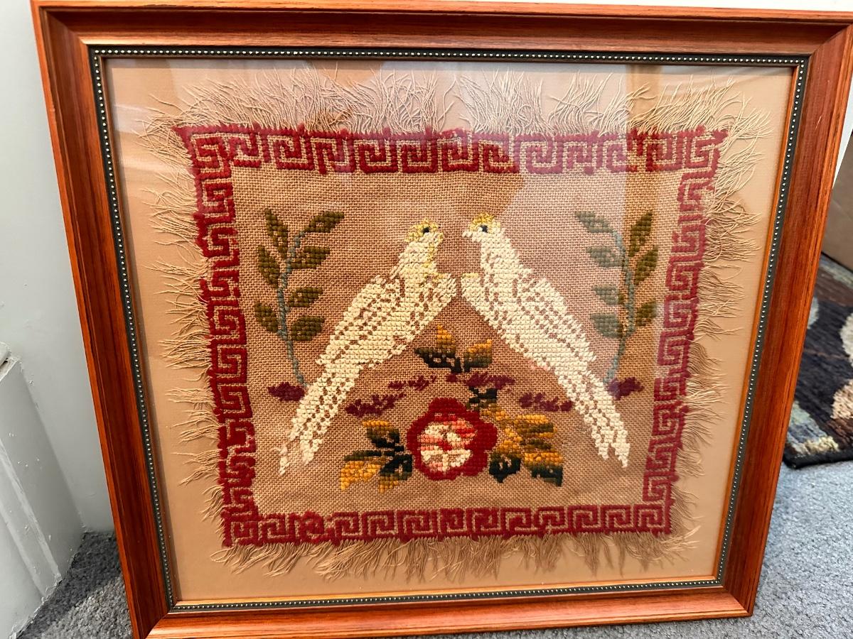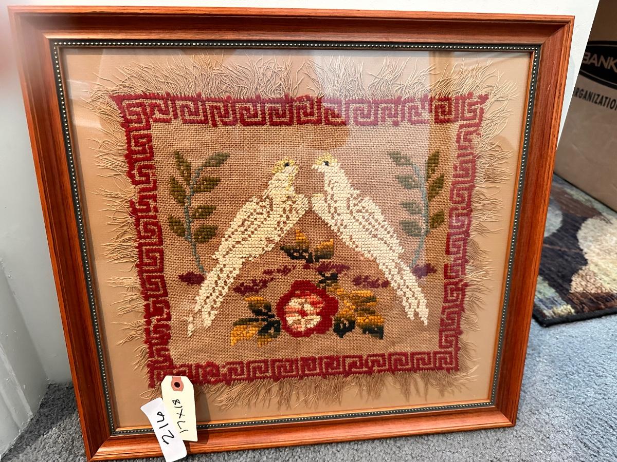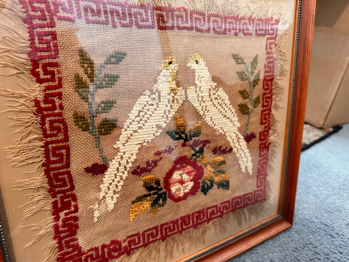 FRAMED NEEDLE POINT BIRD ART 17X18 AS PICTURED