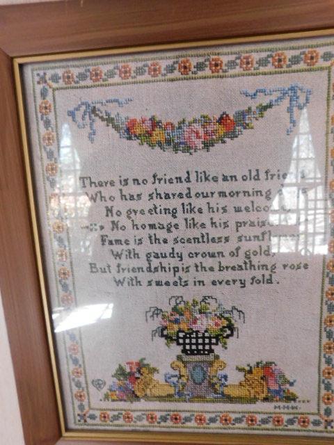 Framed Needle Work Art 'No Friend Like an Old Friend' Poem