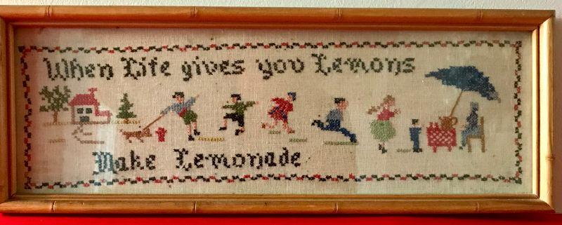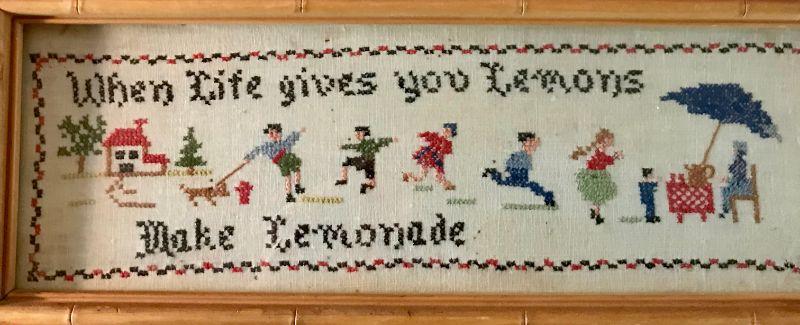 Framed Needlepoint: "When Life Gives You Lemons, Make Lemonade"