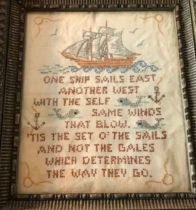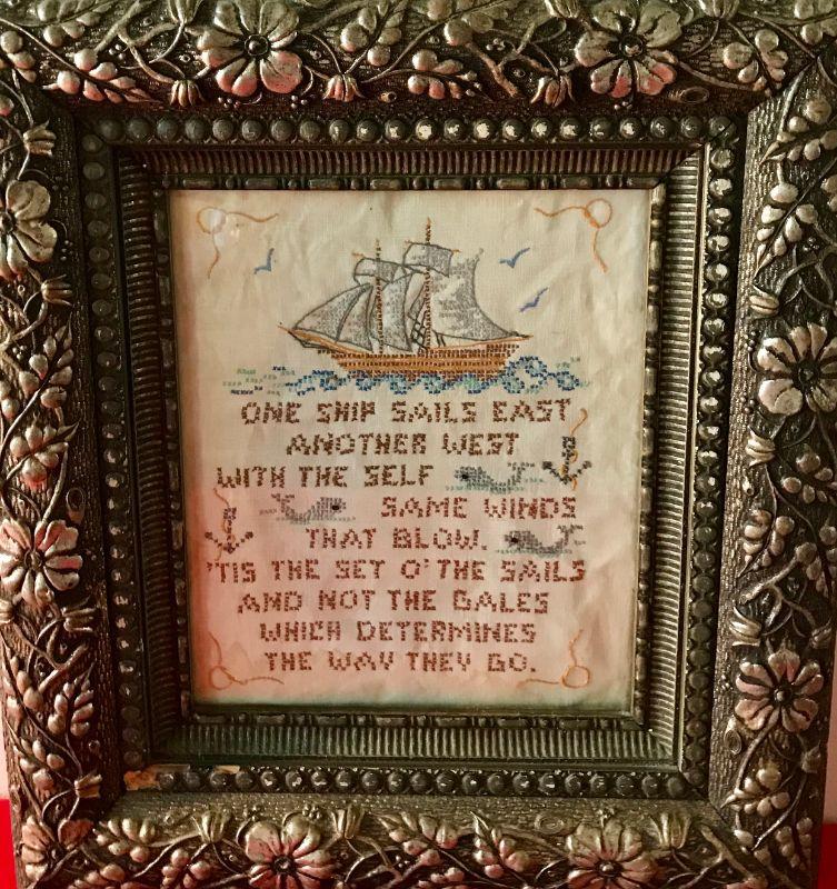 Framed Needlepoint With Ship