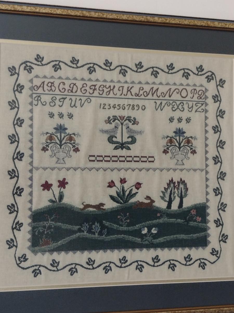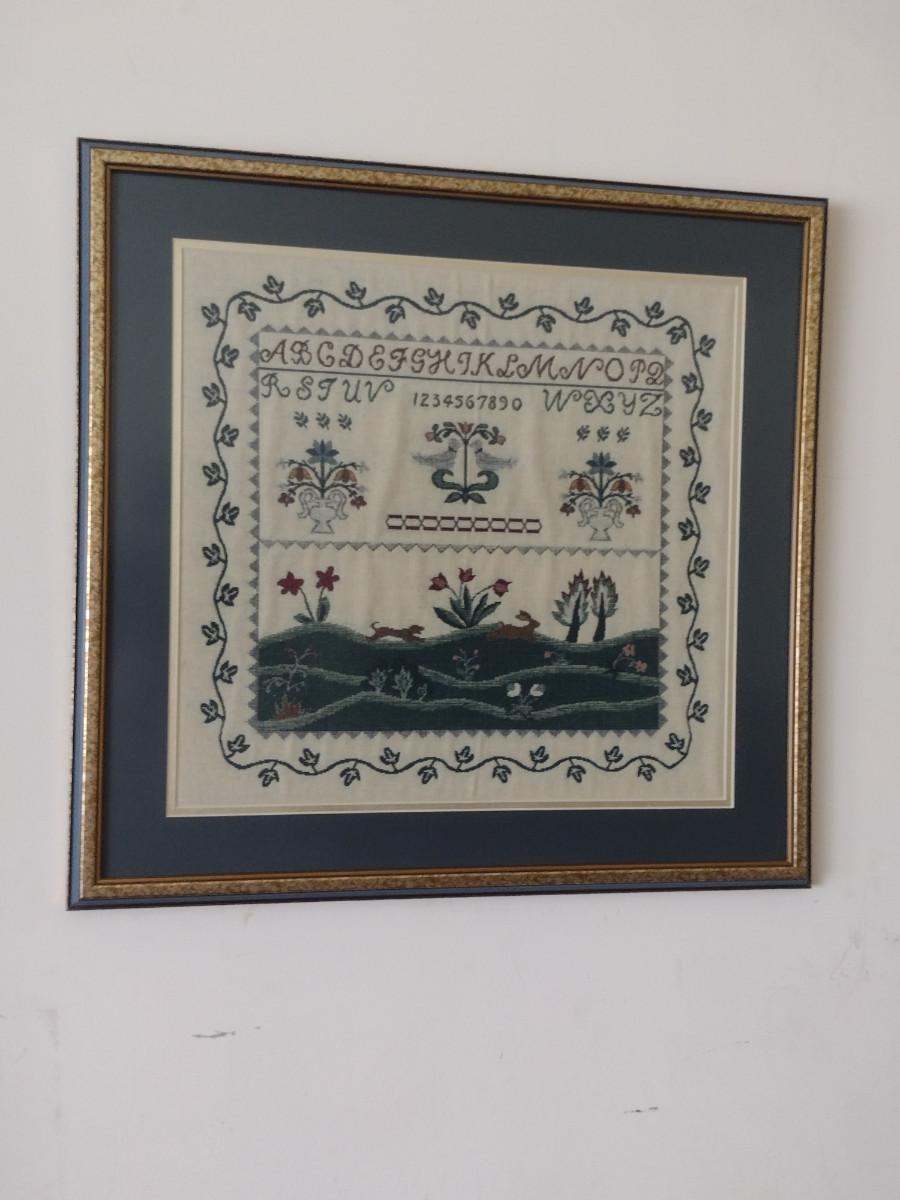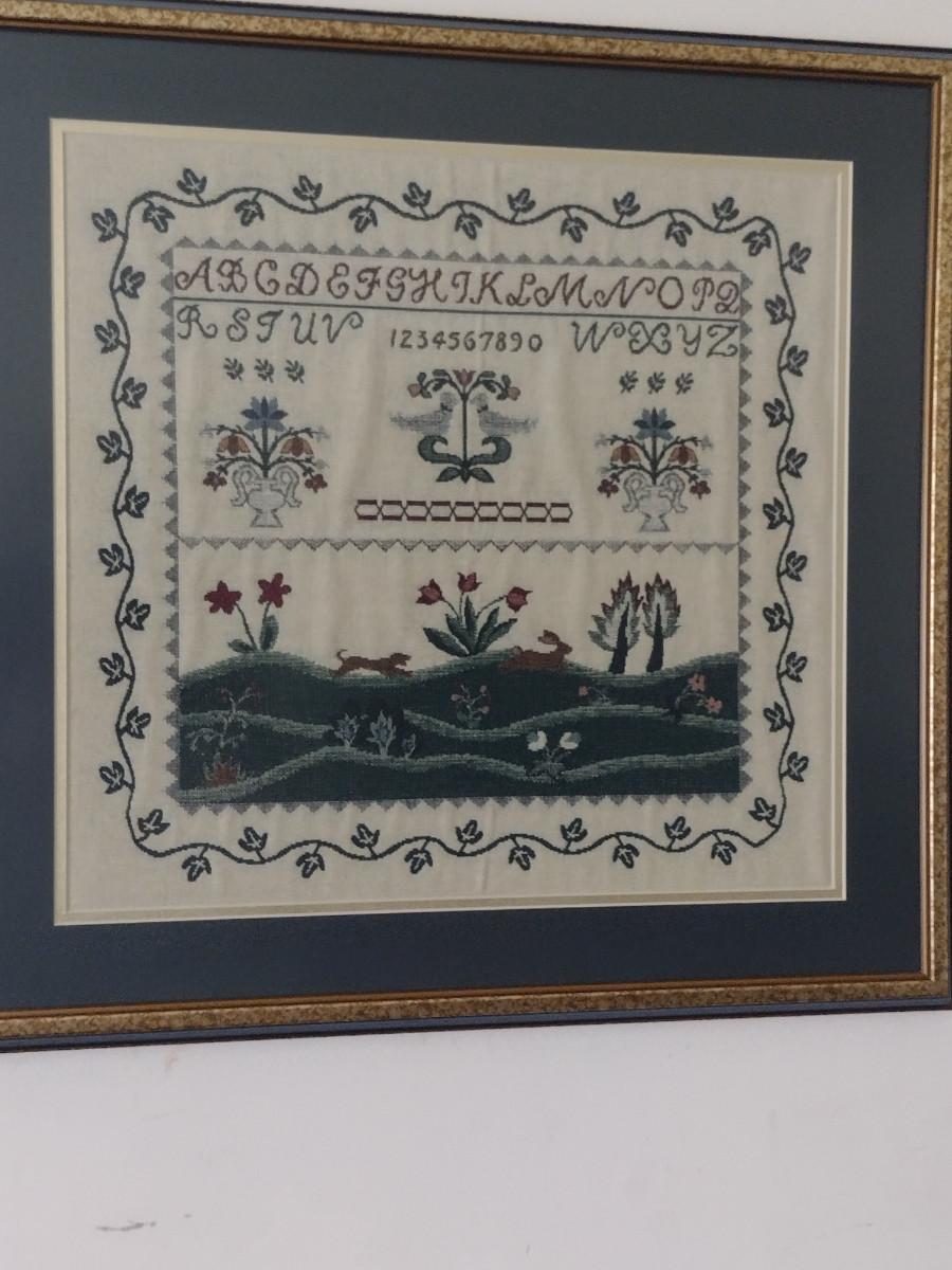 Framed Needlework Sampler- Approx 23 1/2" x 22 1/2"
