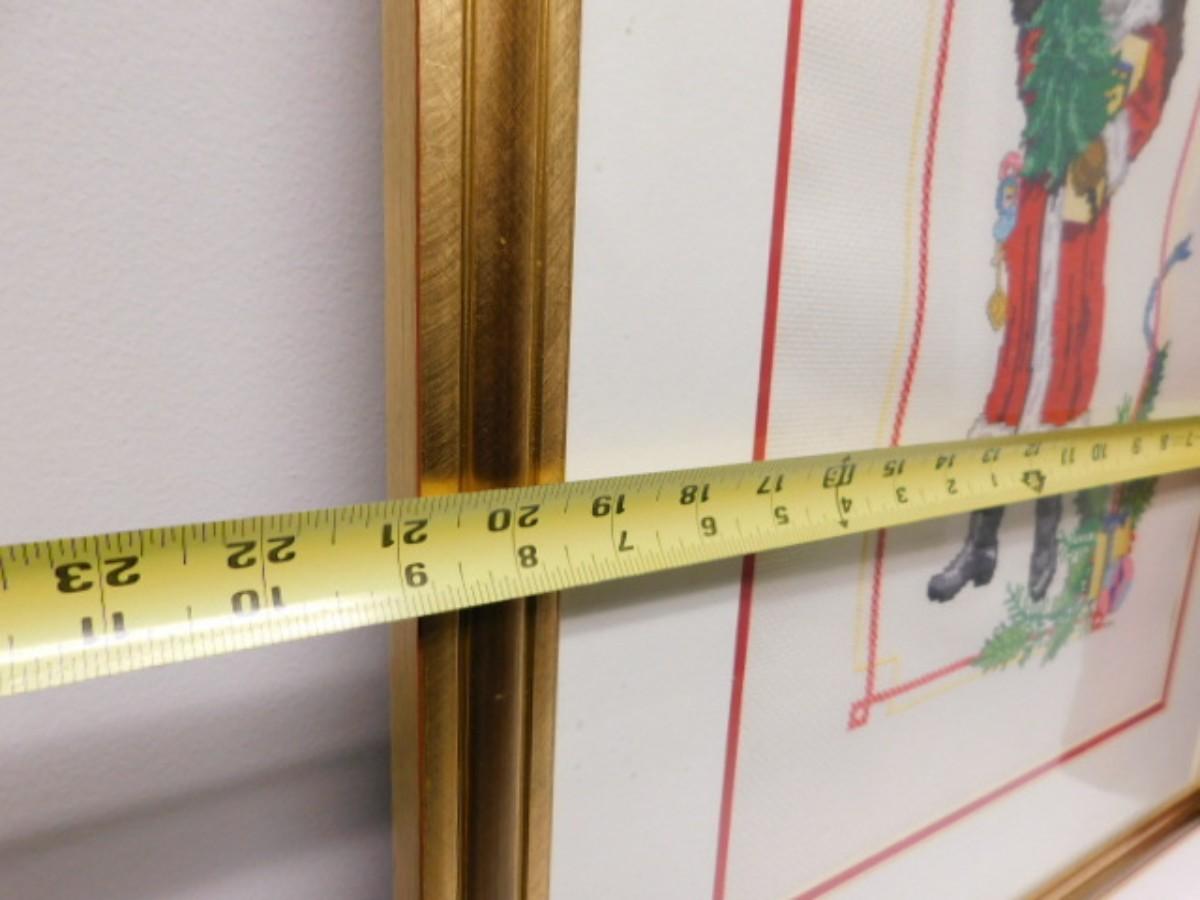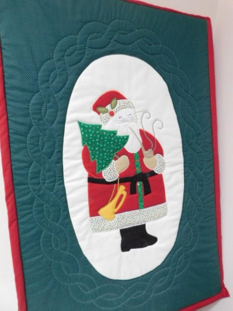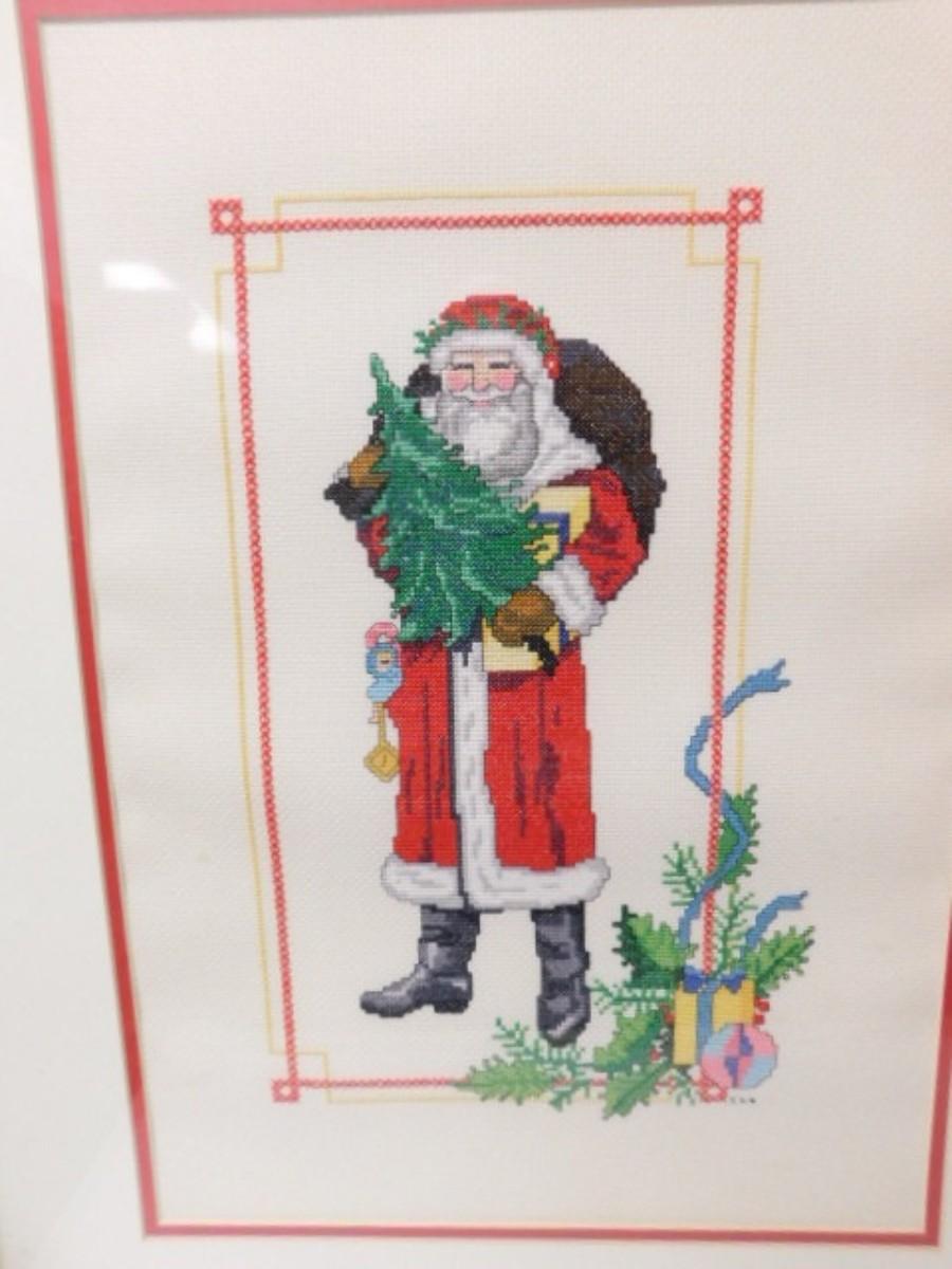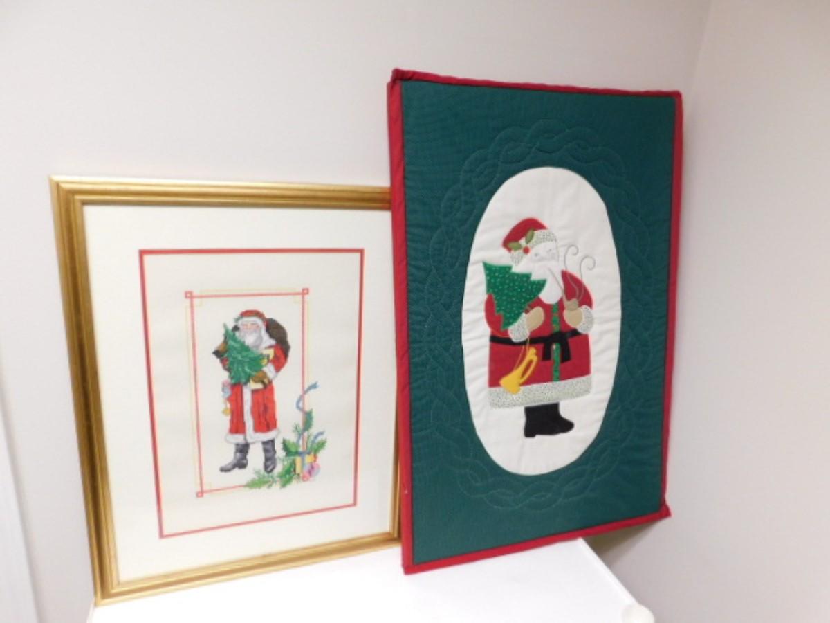 Framed Needlework Santa and Quilted Holiday Wall Panel Decor