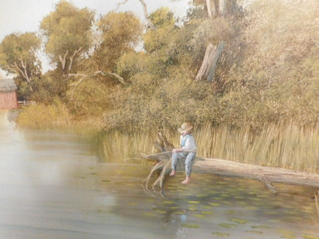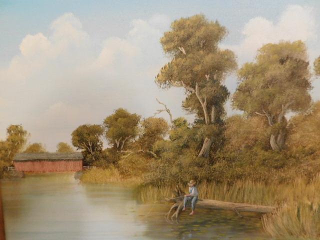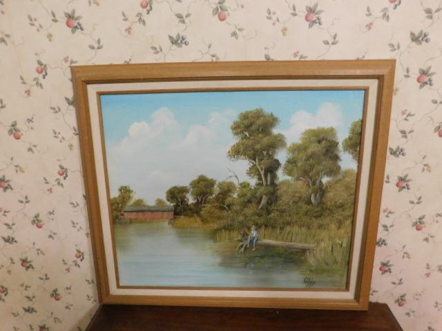 Framed Oil by Gibbs Boy Fishing 28:x25"