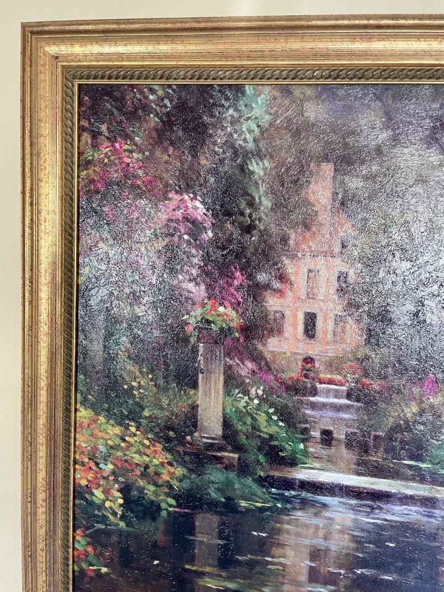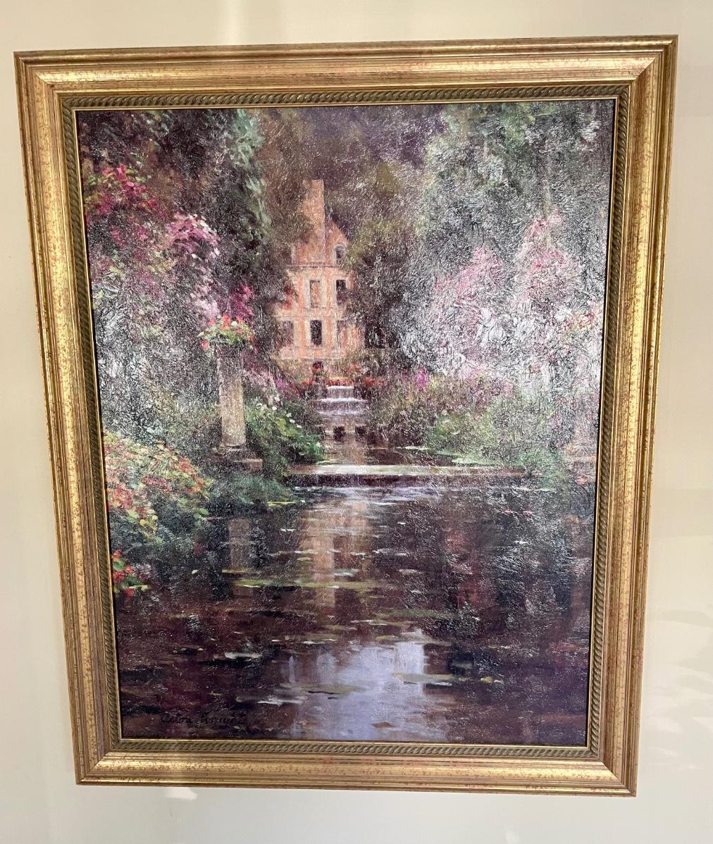 Front Garden of a Stately Cottage Framed Impressionism Oil on Canvas Giclee