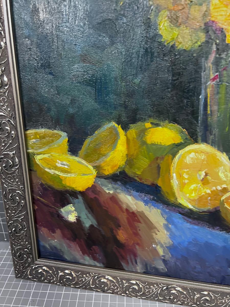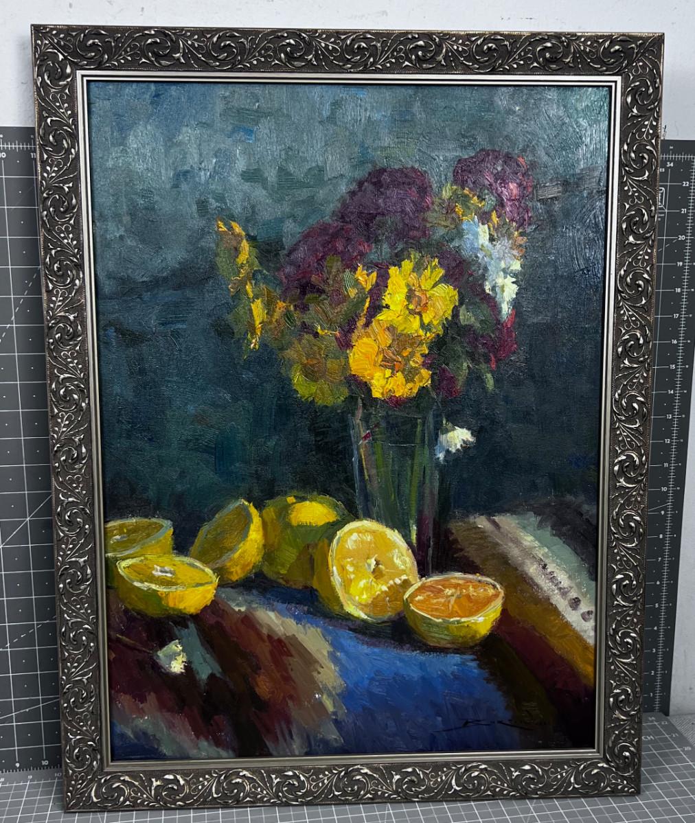 Framed Oil on Canvas Still Life, Flower and Oranges