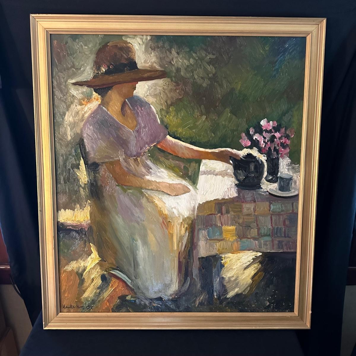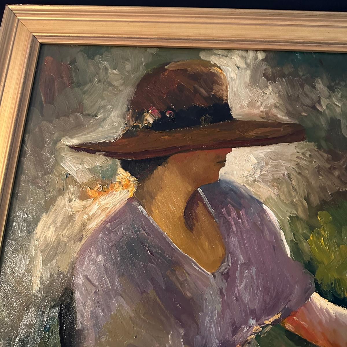 Framed Oil Painting of Lady in Garden(UB-KL)