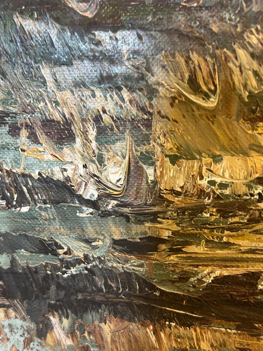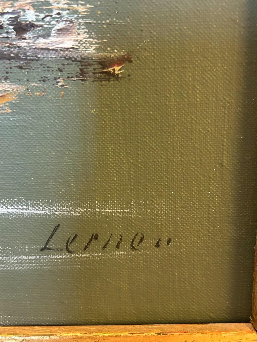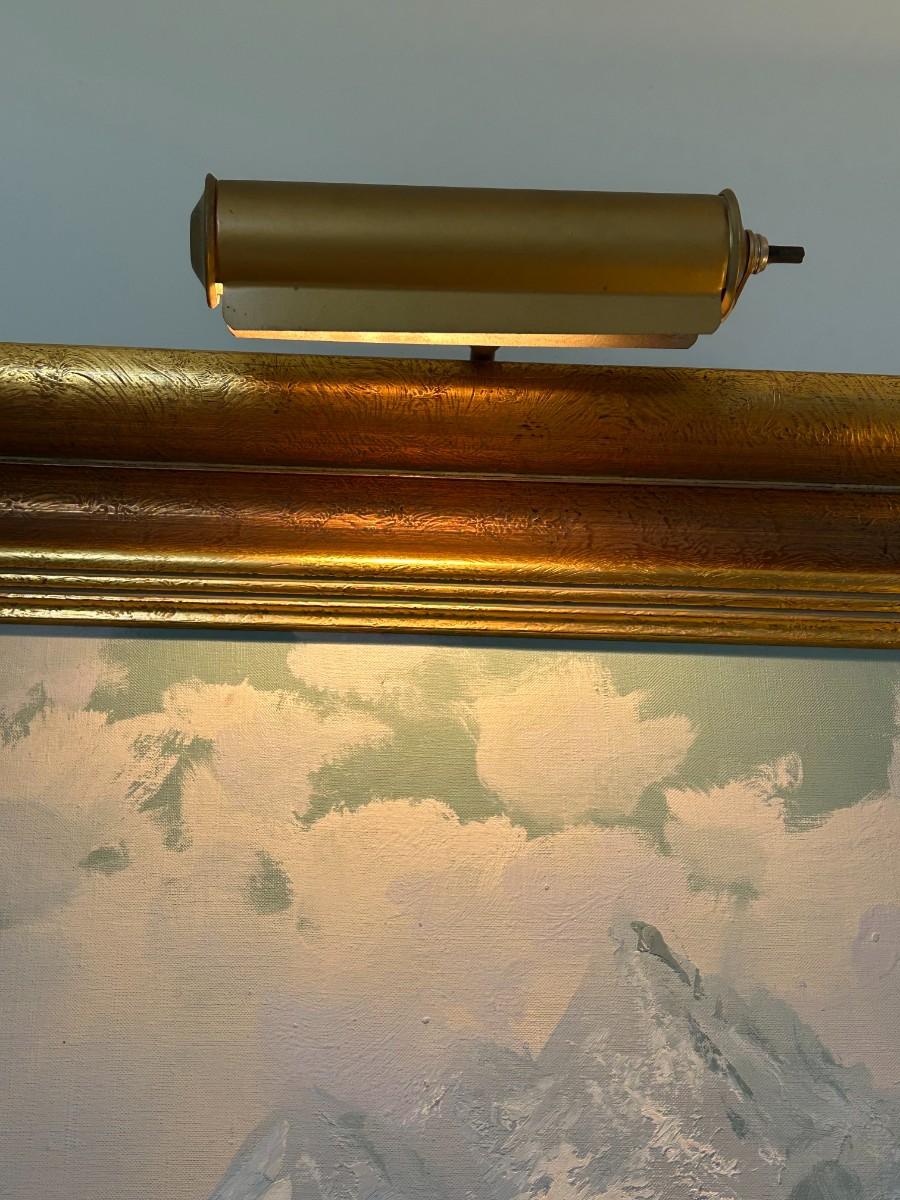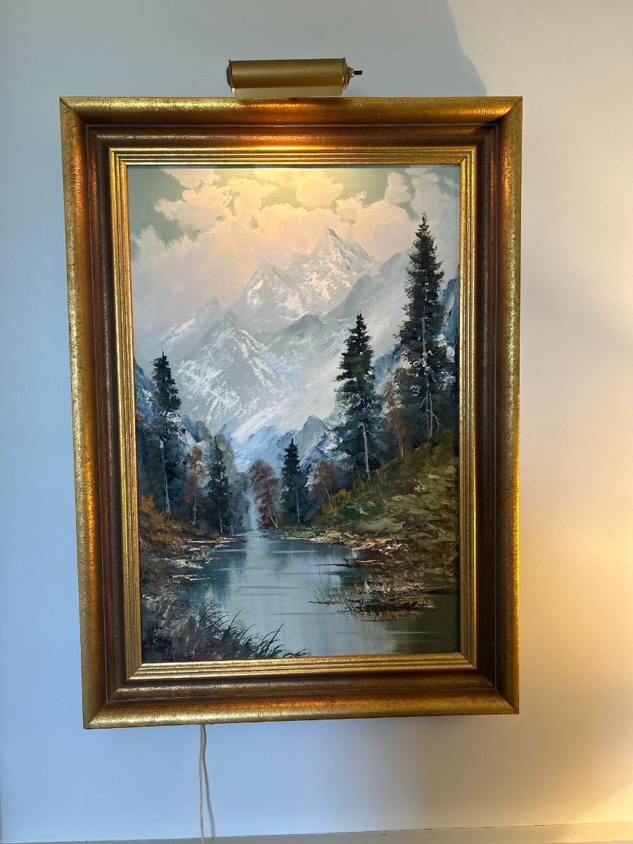 Shows Alpine landscape with stream, excellent condition. Measures 42.5x30.5