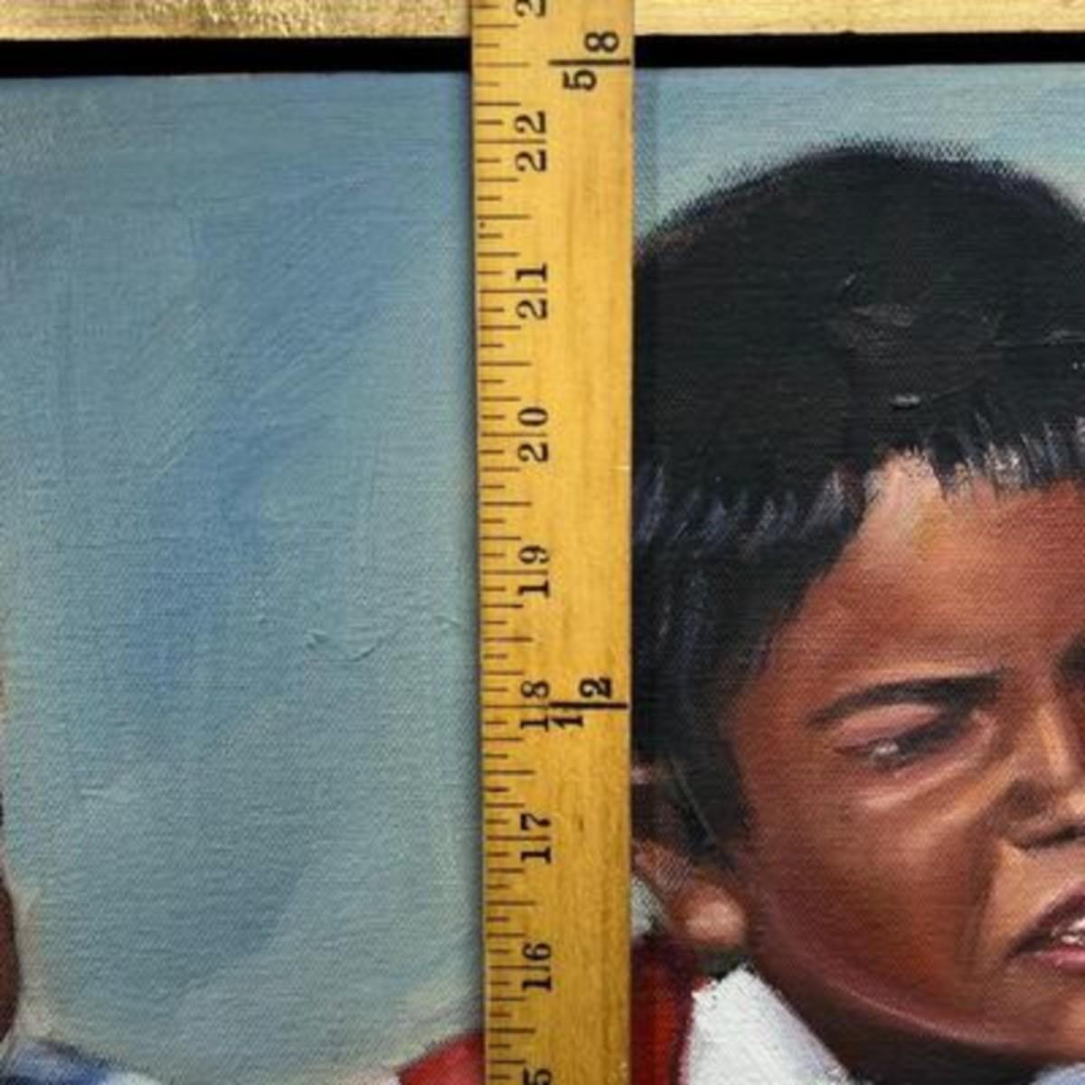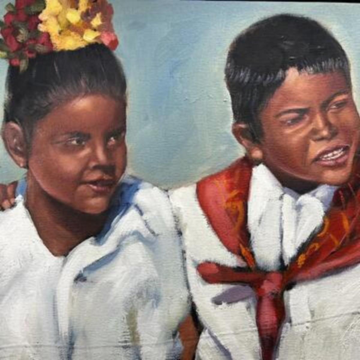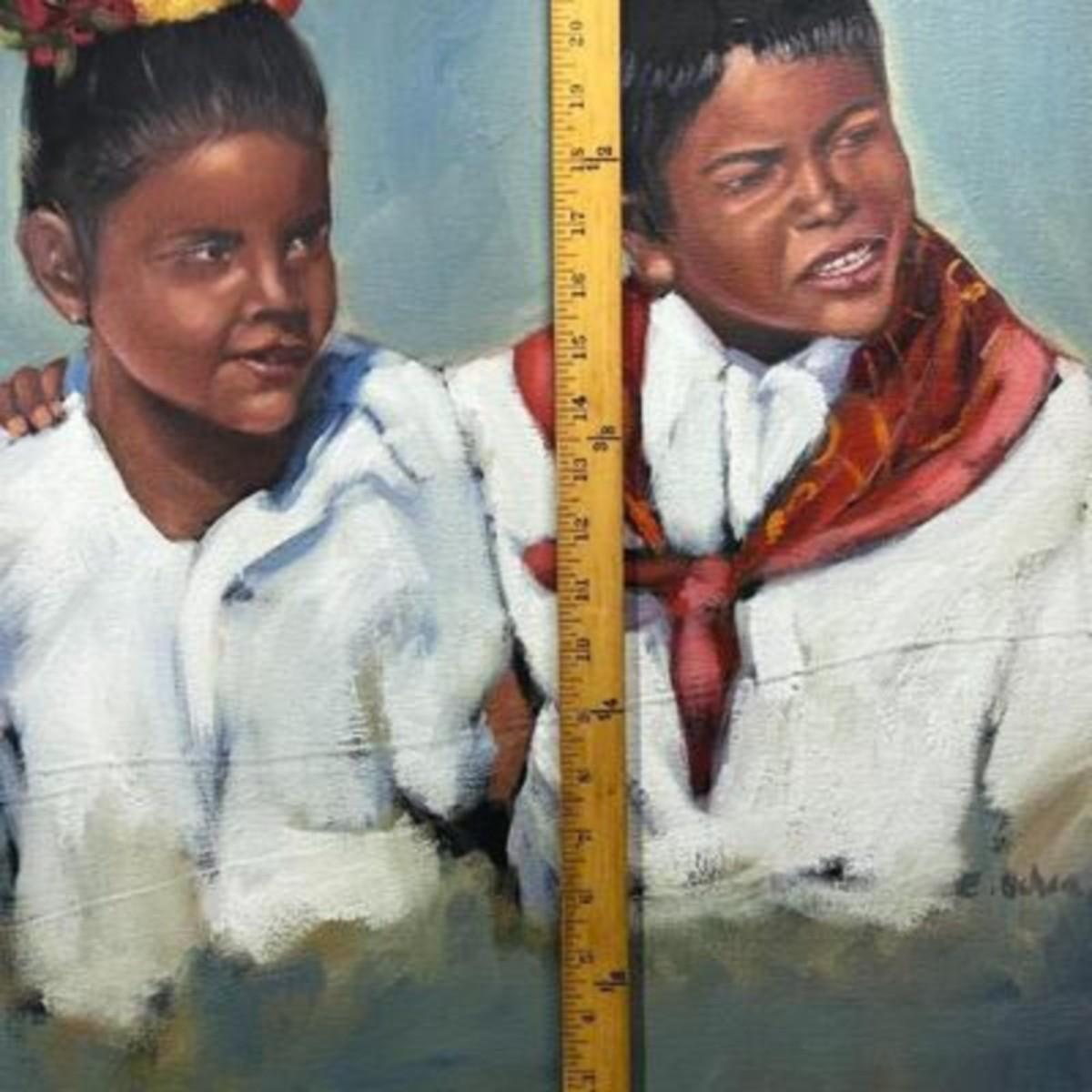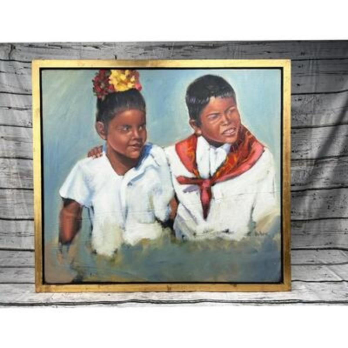 Framed Oil Painting of Two Hispanic Ethnic Children in White