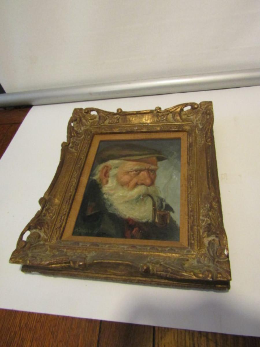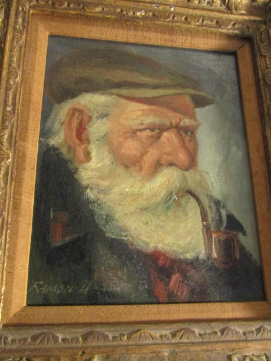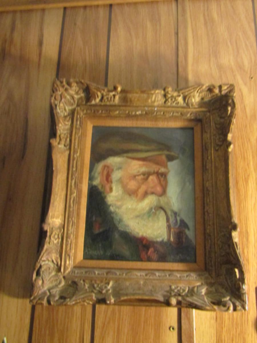 Framed, Original Oil Painting on Canvas - Sea Captain with Pipe- Approx 12" x 15"