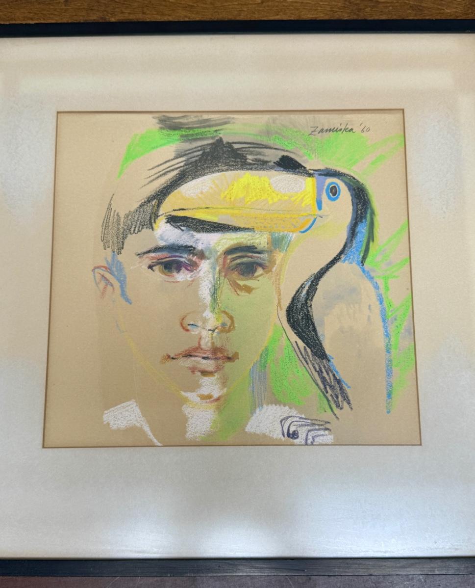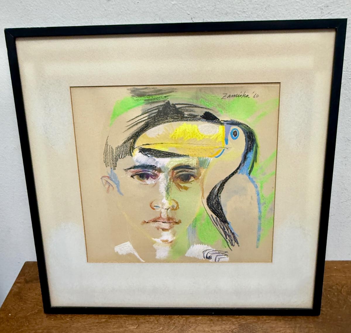 Framed Original Art Human Face & Toucan Face 1960 signed Zamiska