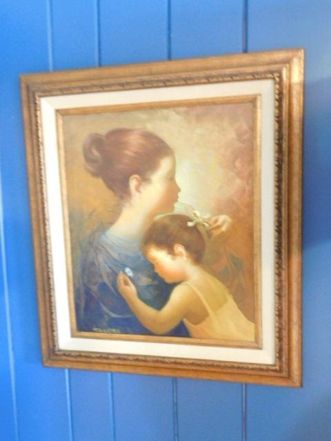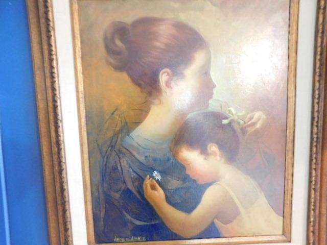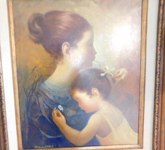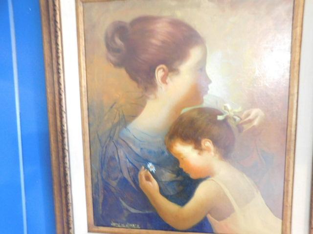 Framed Original Art Mother and Child Signed by Artist Jaime de Jaraiz 28"x31"