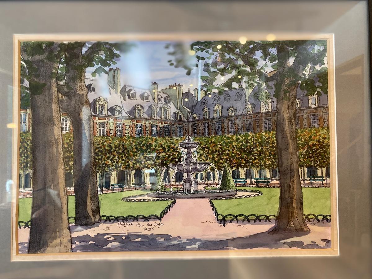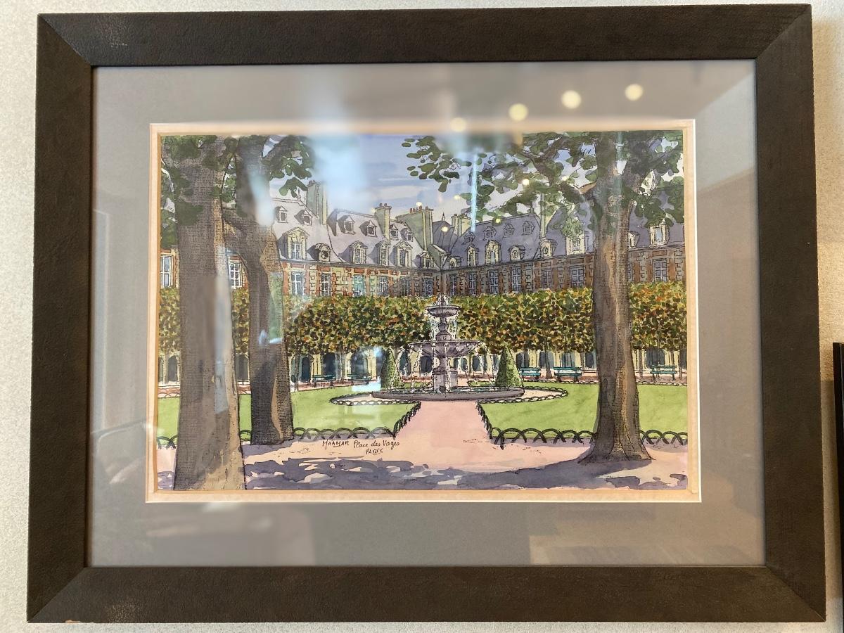 Framed Original Artwork, Watercolor Place des Voges