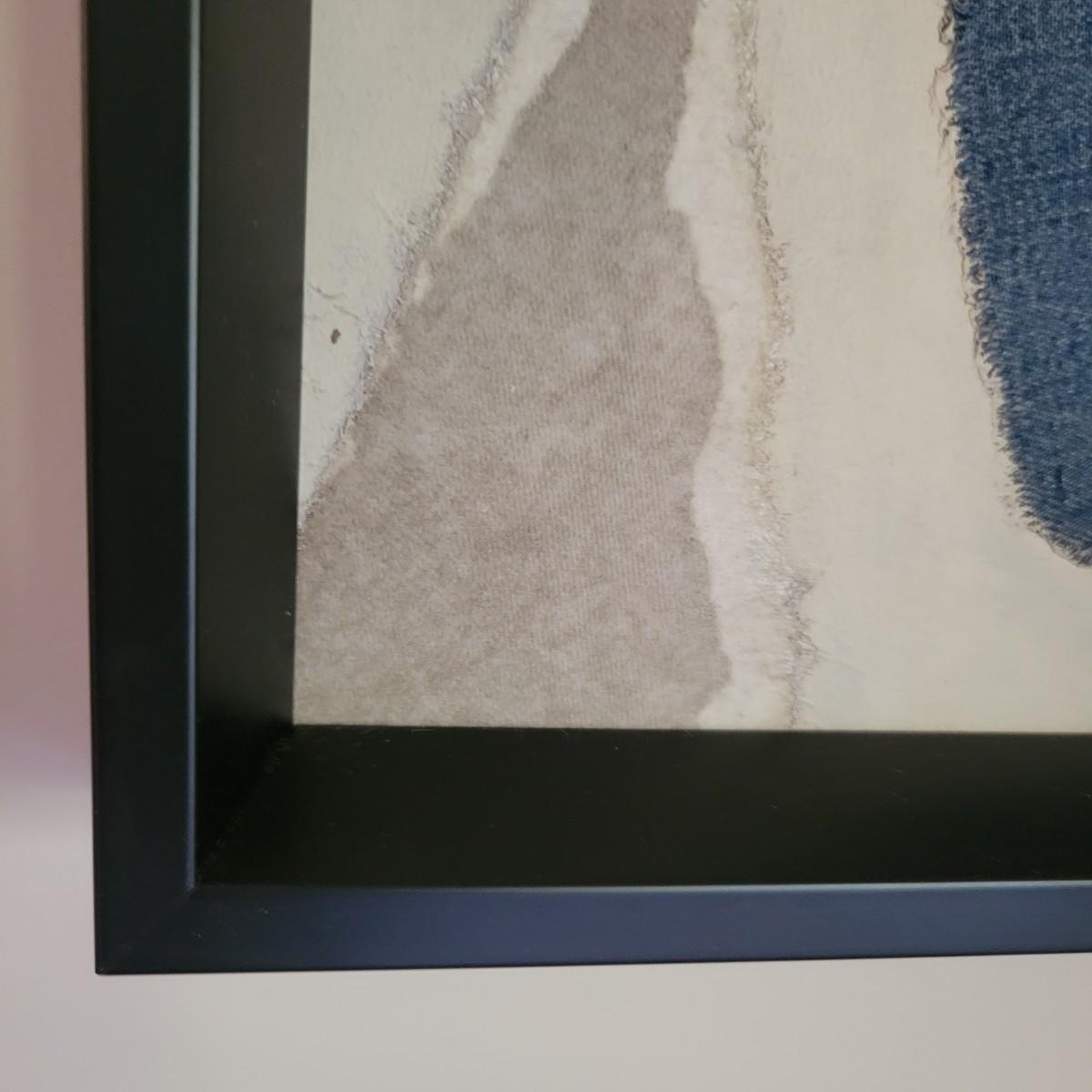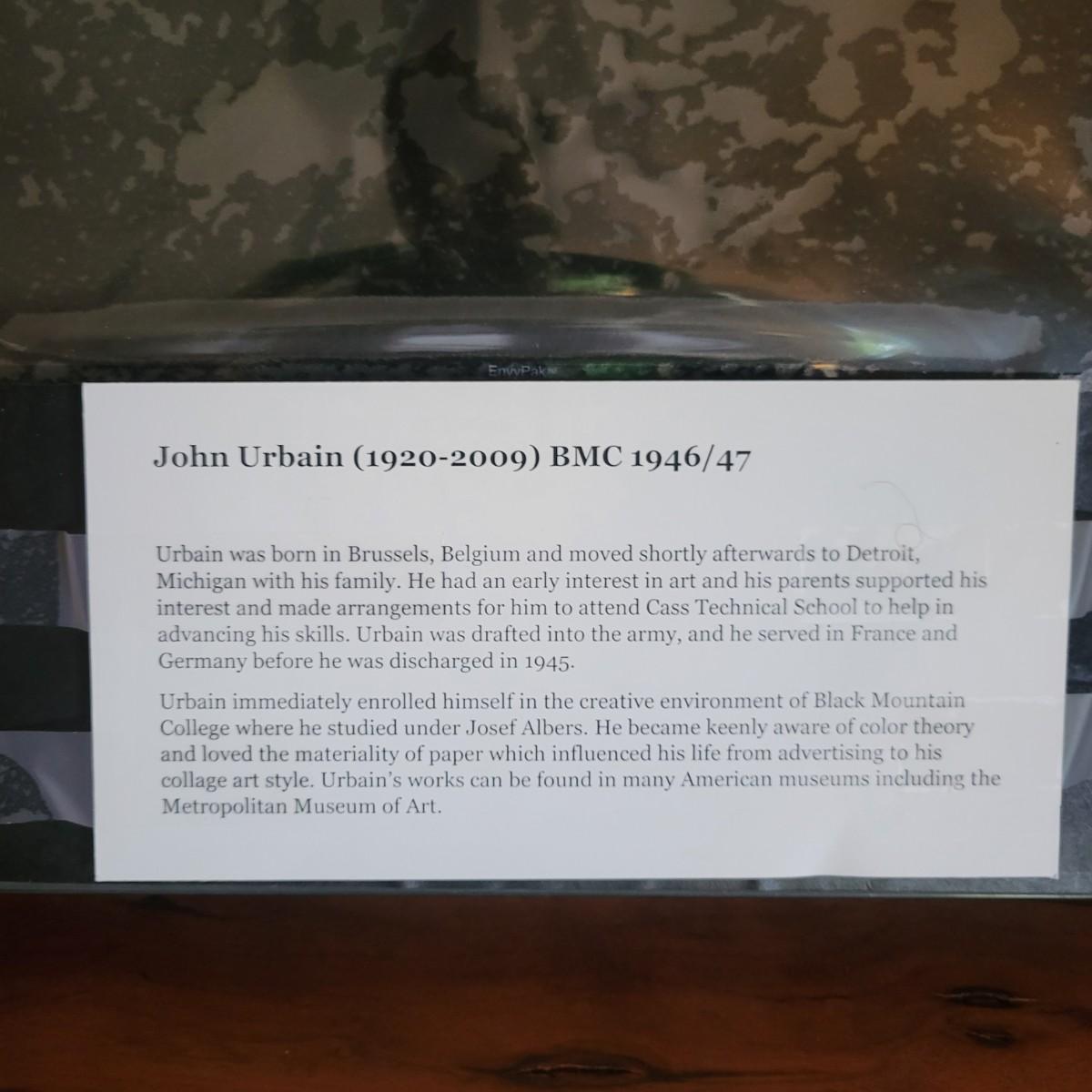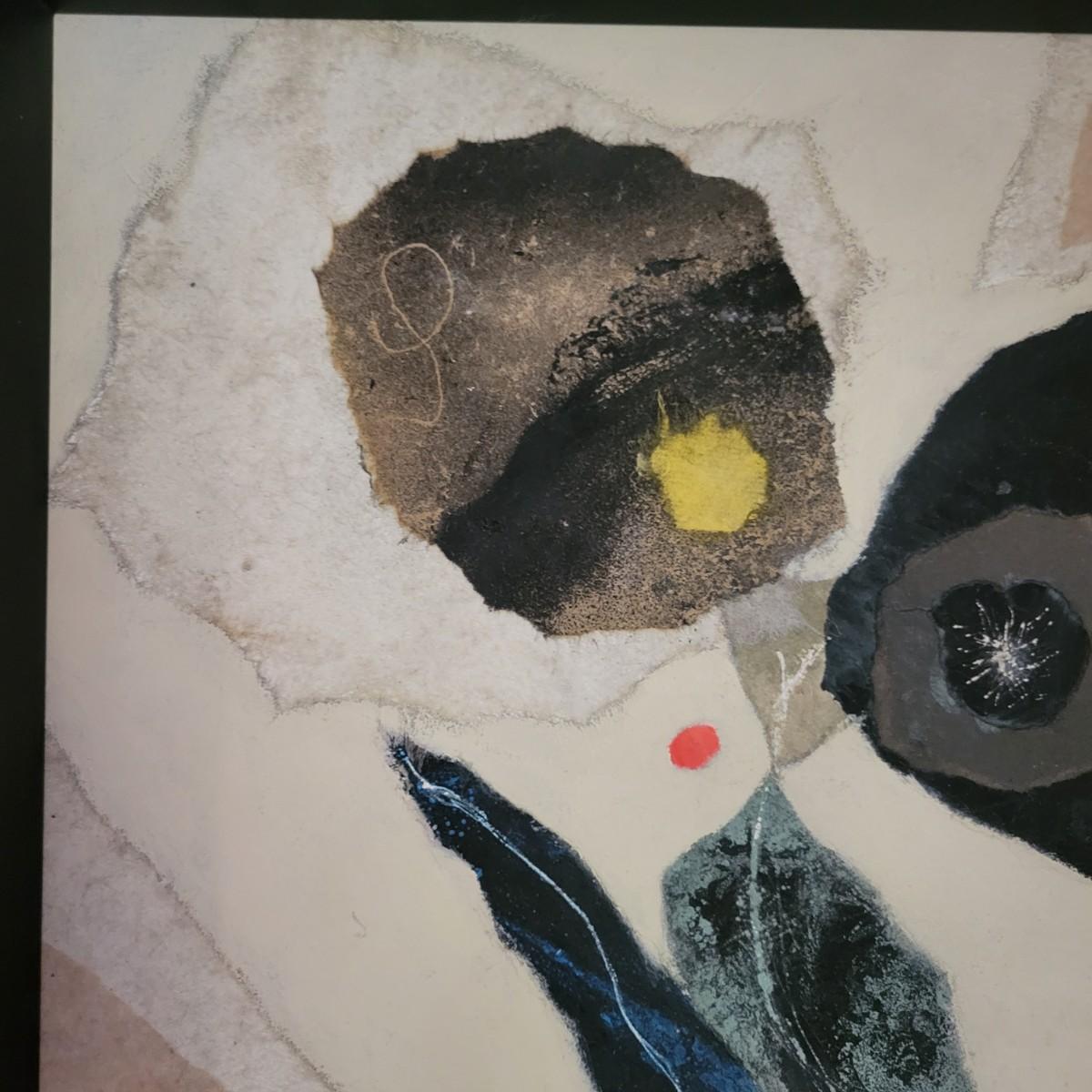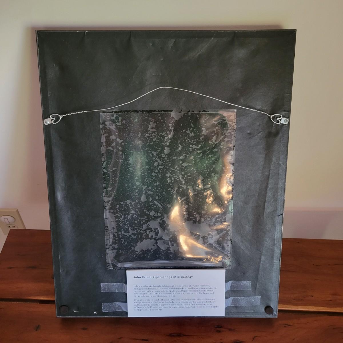 This is an original Framed piece of textured and layered paper art by John Urbain, who attended Black Mountain College after WWII, according to the biography on the back of the art. This piece features different paper textures, weights and colors overlapped to create tactile experience. It is framed in a simple black wooden frame and measures approximately 17" x 2" x 21.5". Shipping available. Shipping can be costly. We suggest contacting our preferred local shipping provider, Postage Express, with dimensions and getting an estimate before bidding: (828) 670-5501 or postageexpress@yahoo.com.