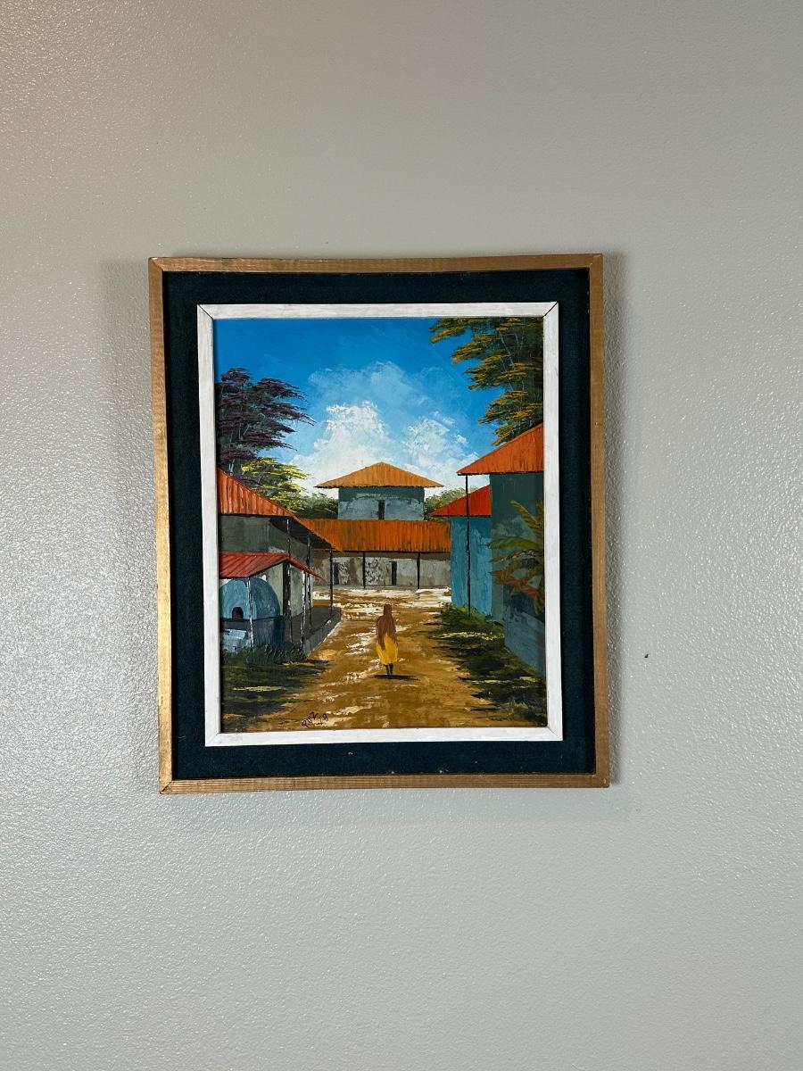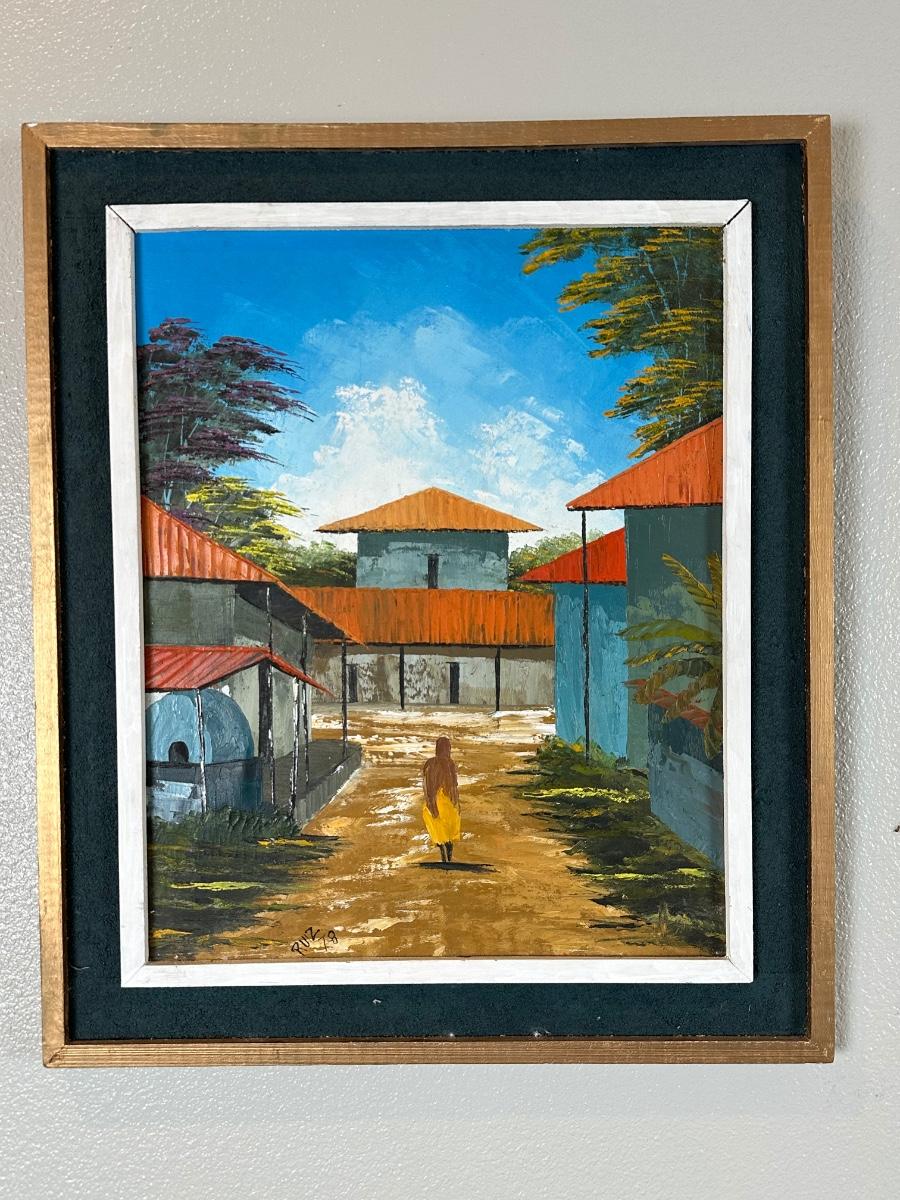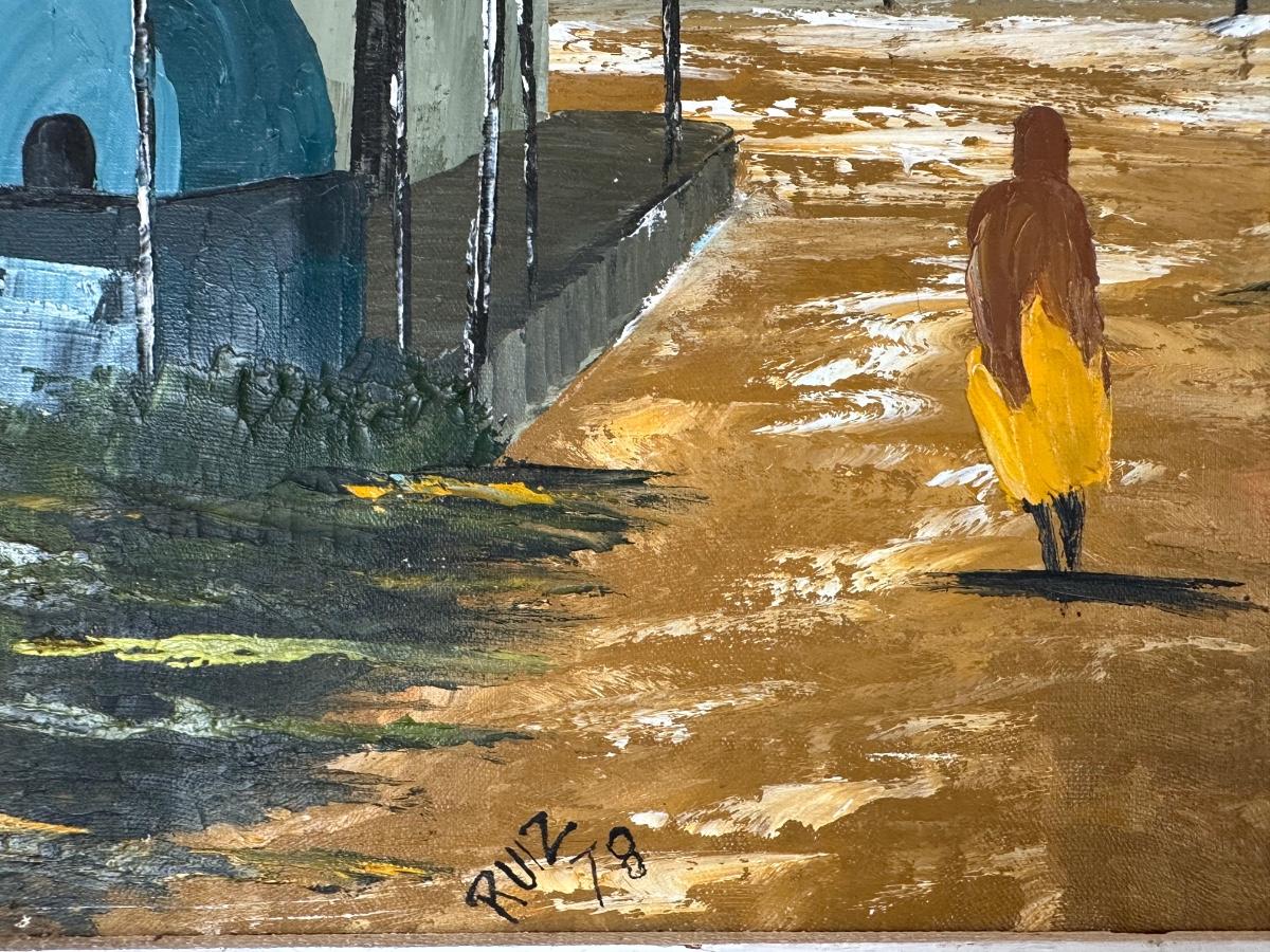 Framed Original Painting Signed by Ruiz (1978) – Village Scene