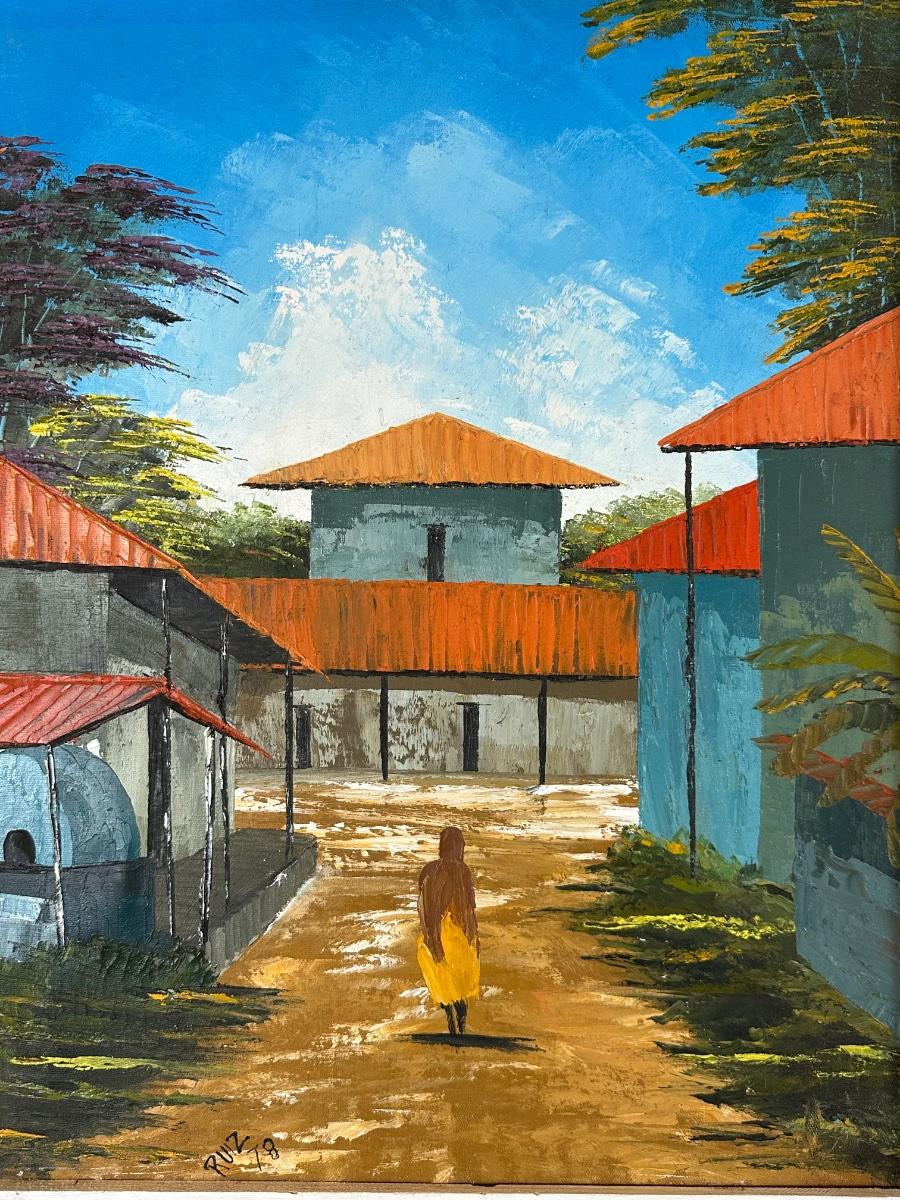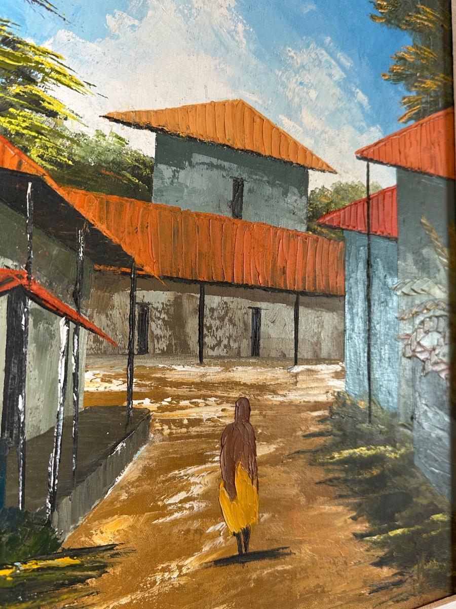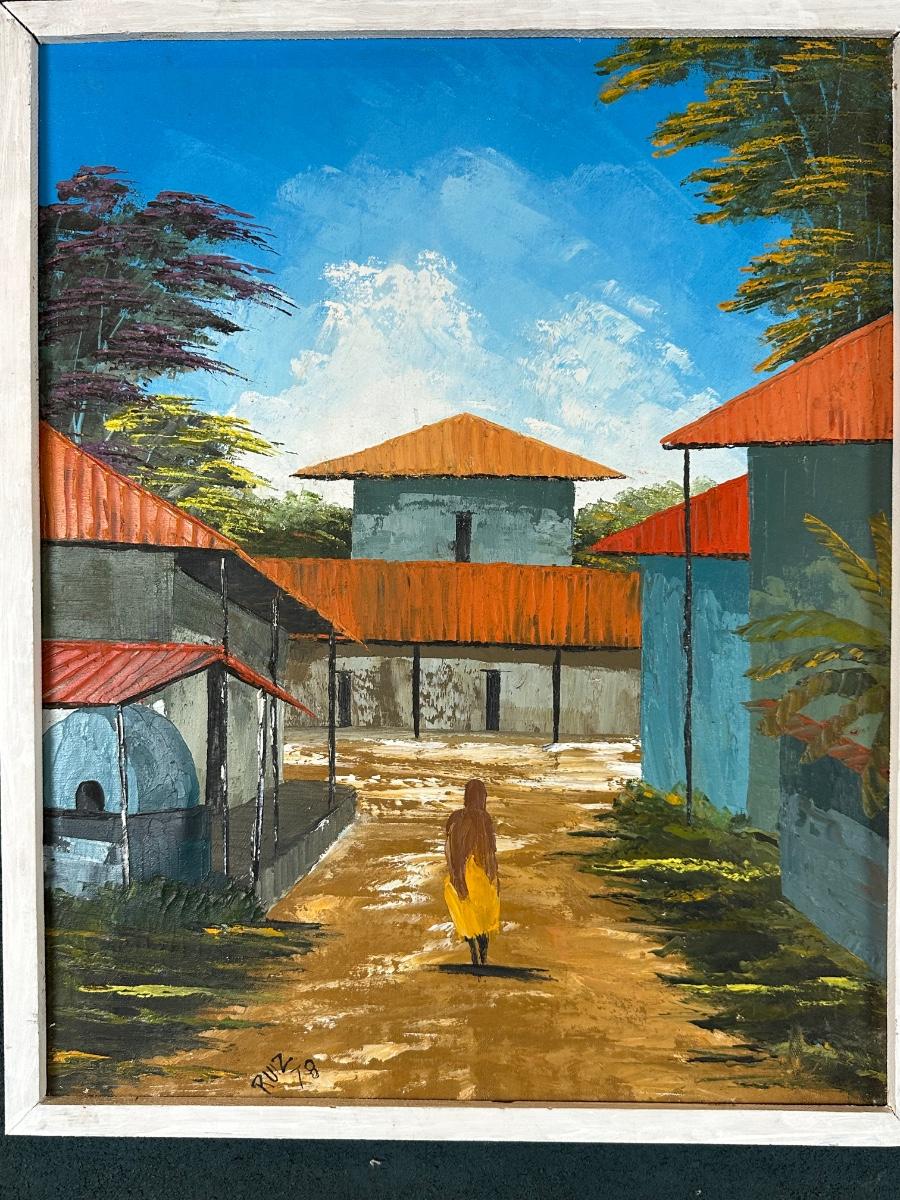 Framed Original Painting Signed by Ruiz (1978) – Village Scene