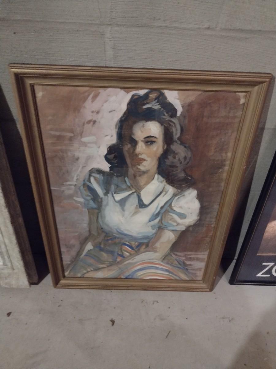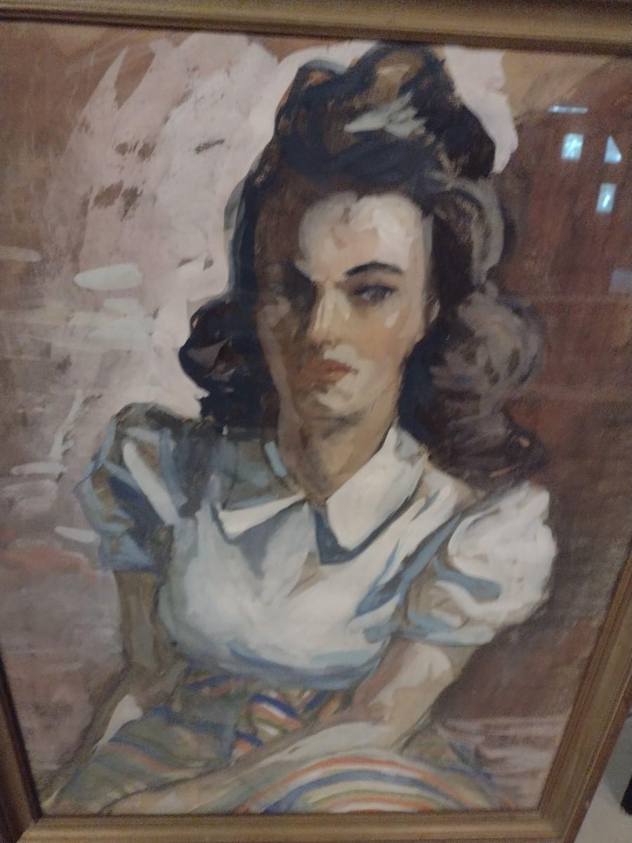 Framed Original Watercolor Art Portrait of Woman Unsigned