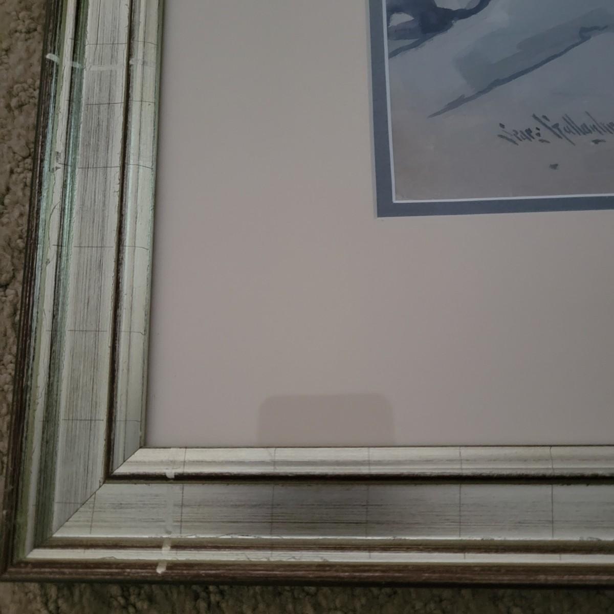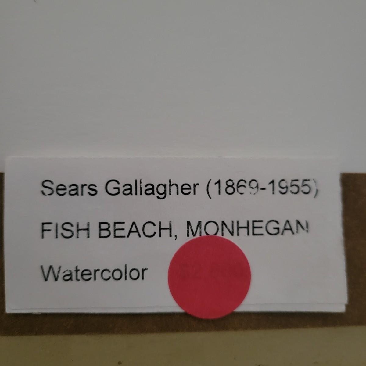 An original watercolor by Sears Galiager. This piece depicts a seaside scene and is framed in a wooden frame with a silver finish. It has two acid free mats and muesem glass. It measures approximately 28.5" x 1" x 22.5"H. Shipping available. Shipping can be costly. We suggest contacting our preferred local shipping provider, Postage Express, with dimensions and getting an estimate before bidding: (828) 670-5501 or postageexpress@yahoo.com.